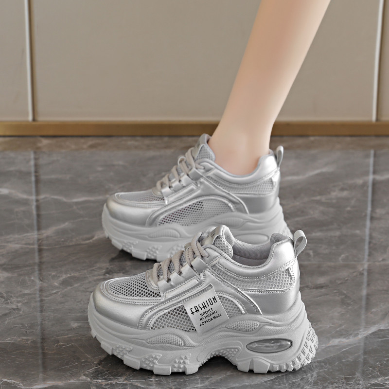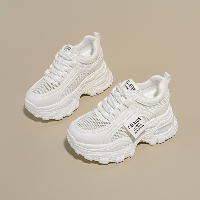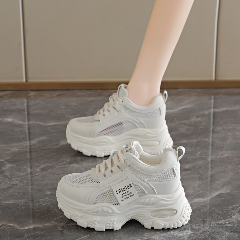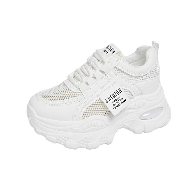 网眼内增高女鞋夏季镂空网面透气小白鞋女小个子增高8cm老爹鞋女