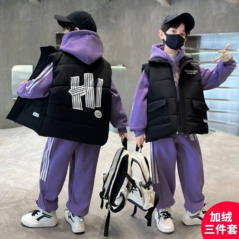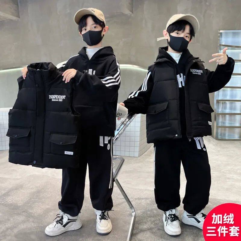 男童冬装套装三套冬款加绒加厚2024新款中大童酷帅男孩冬季卫衣