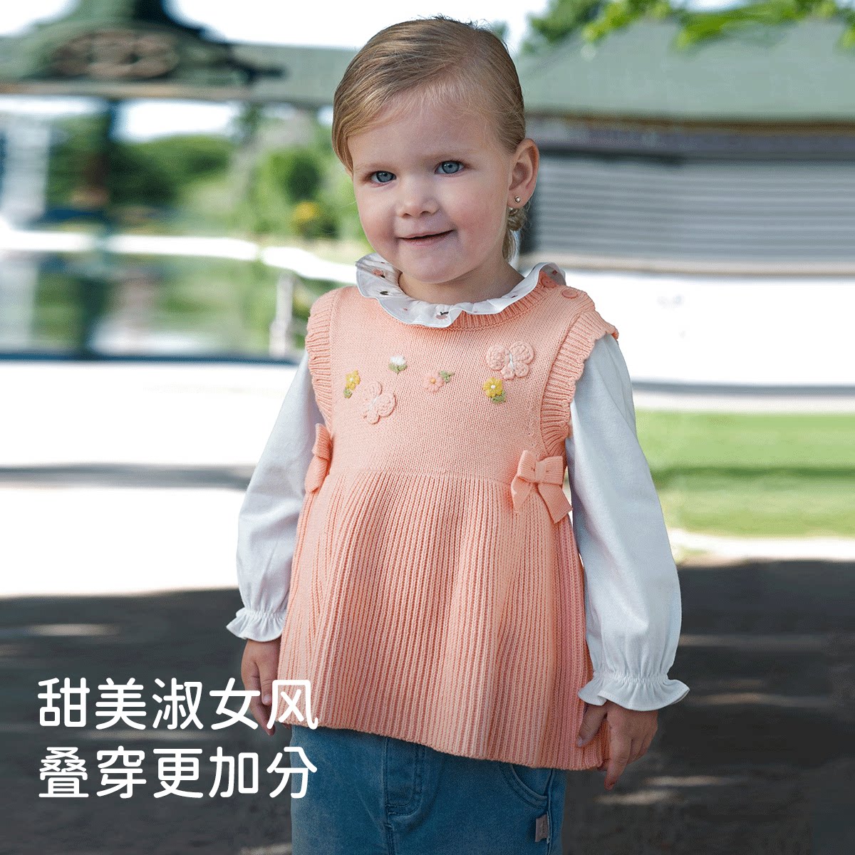 【商场同款】戴维贝拉女童毛衣背心春装女宝针织裙式上衣马甲童装