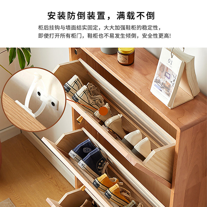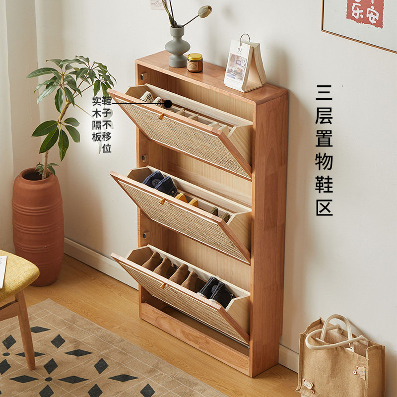 日式超薄翻斗鞋柜实木藤编鞋柜家用门口入户楼道透气玄关柜窄鞋柜