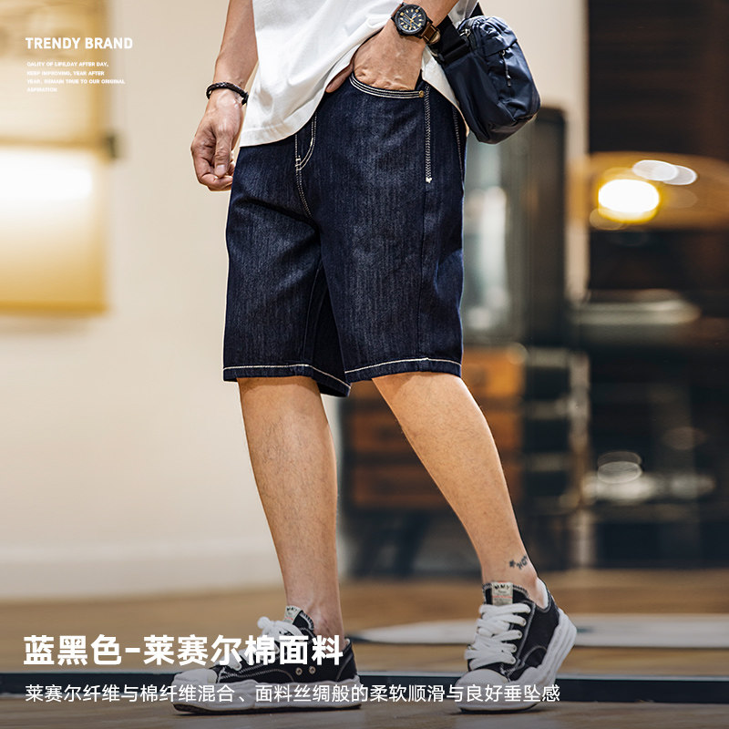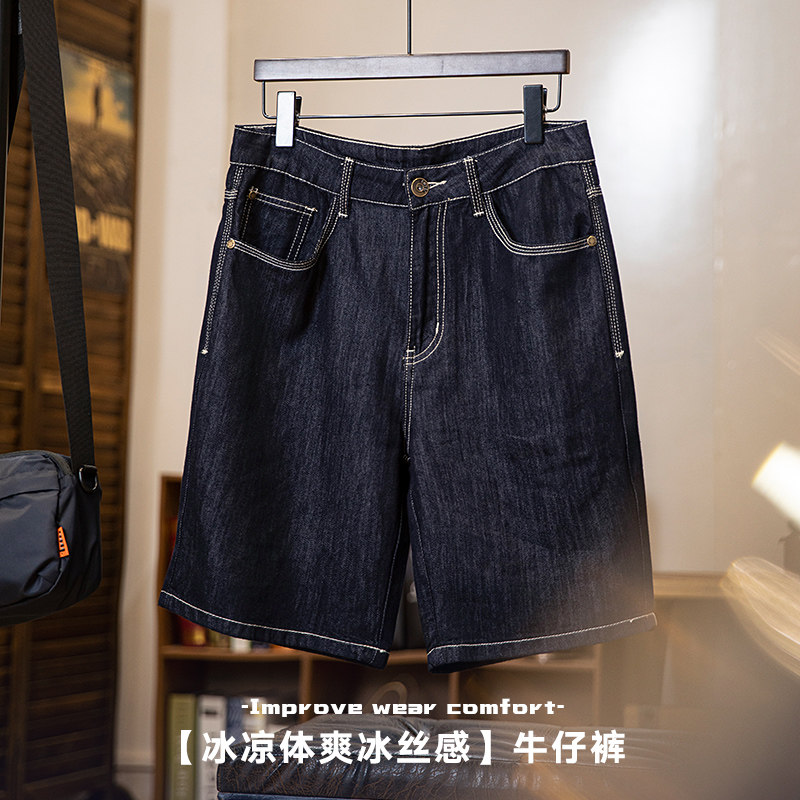 莱赛尔冰丝薄款牛仔短裤男夏季2026新款防掉色宽松直筒五分裤男款