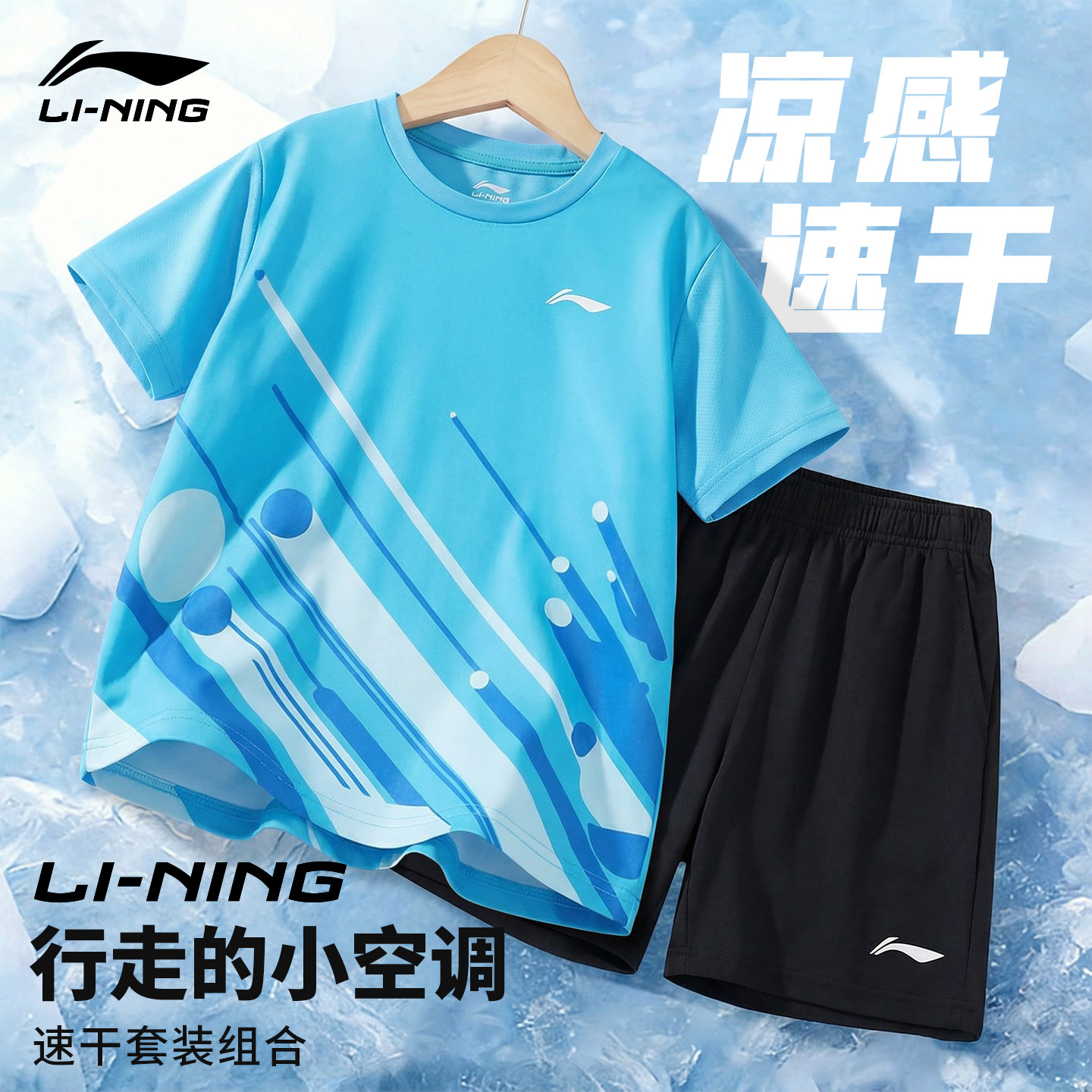 李宁速干套装儿童男童女童羽毛球服乒乓球服健身运动服短袖短裤夏