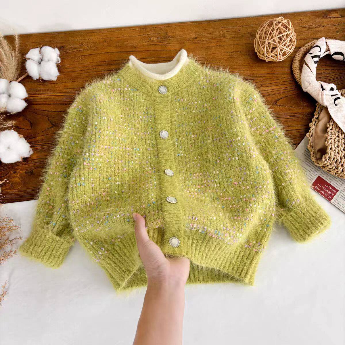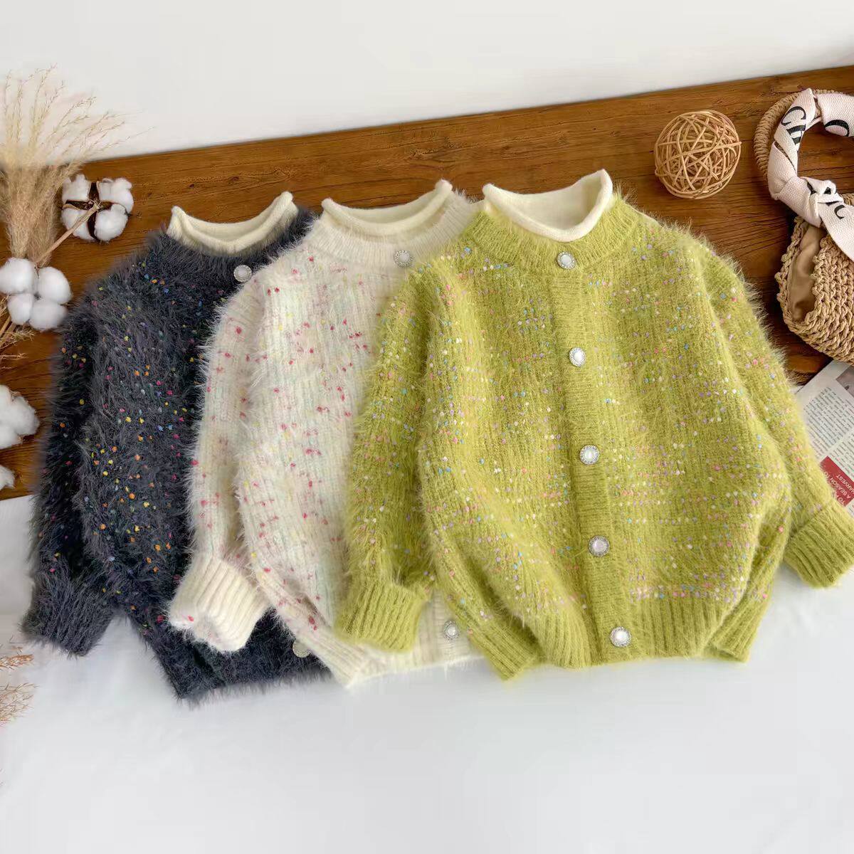 女童毛衣加厚仿貂绒套头打底衫2026儿童外套新款假两件圆领针织衫