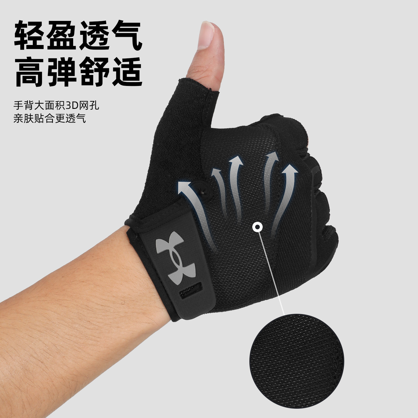 UA安德玛运动健身手套训练户外骑行防滑半指护手透气防起茧男女款