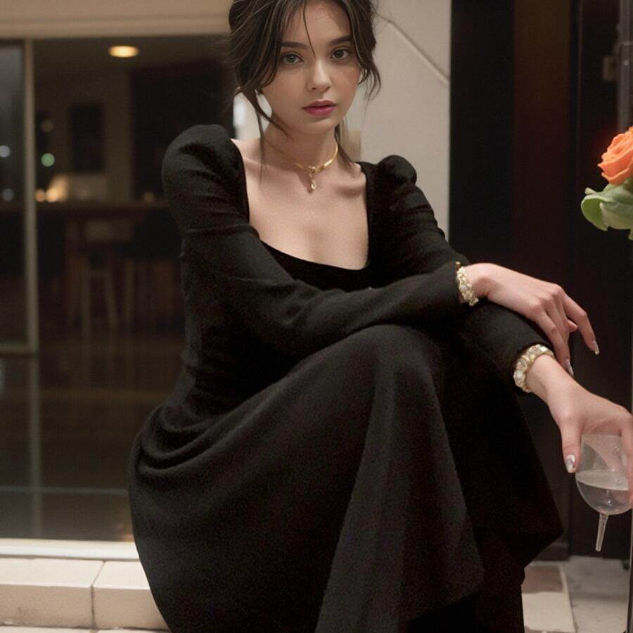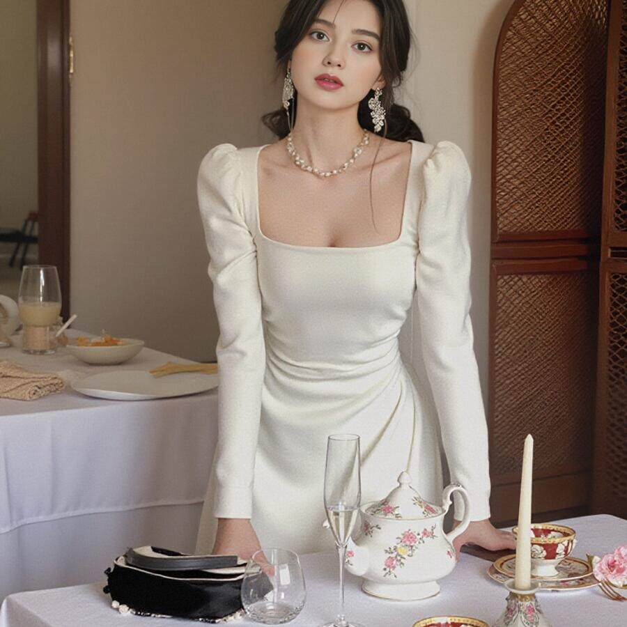 白色长袖连衣裙子女春秋2025夏新款小个子法式高级感初恋收腰长裙