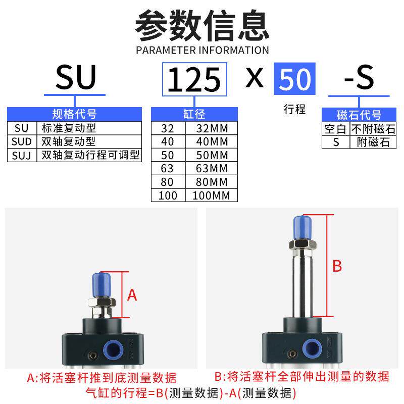SU标准气缸SAU32X40X50X63X80X100X125-25X50X75X100X150X200X300