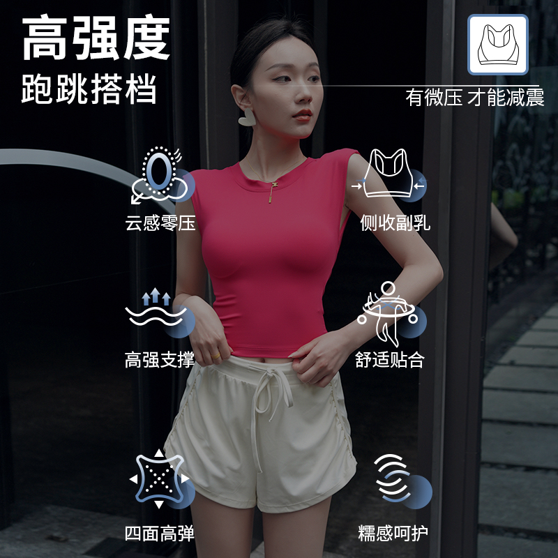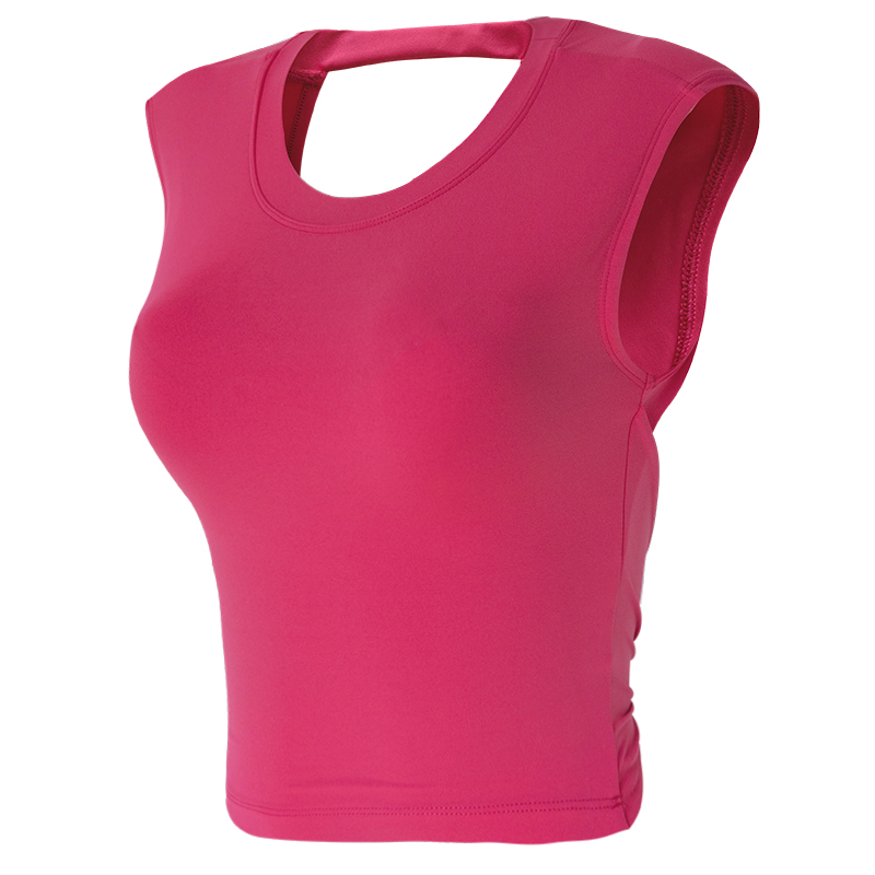 健身女孩露背瑜伽服上衣紧身含胸垫运动短袖速干t普拉提跑步背心