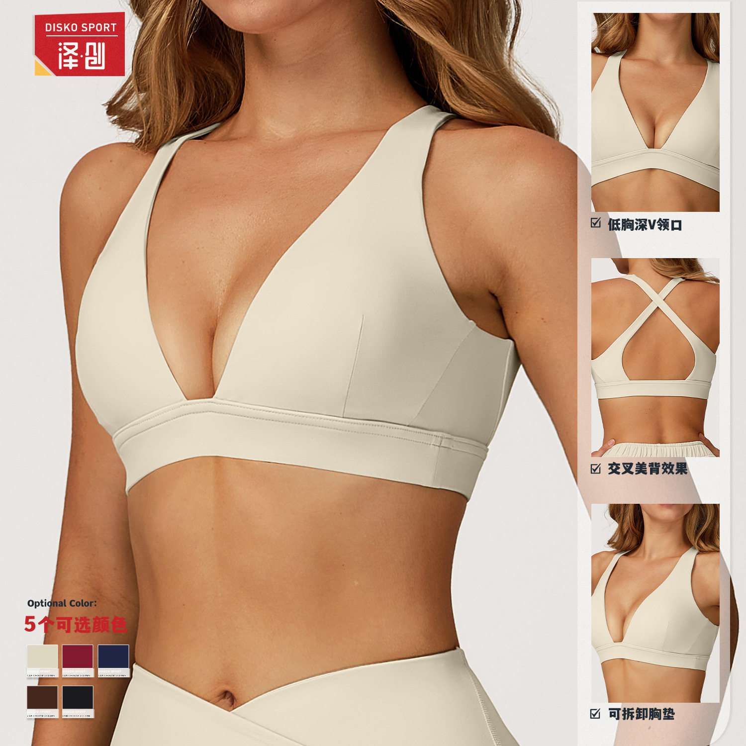 含胸垫瑜伽背心女士美背交叉文胸速干裸感运动内衣健身吊带上衣服