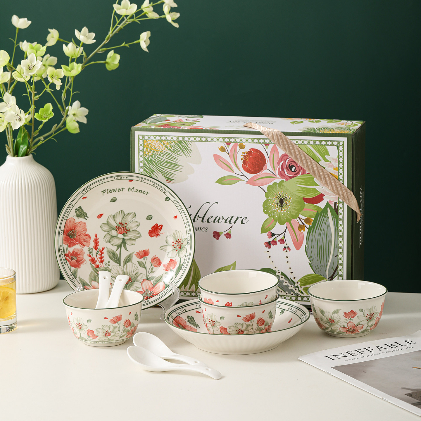 繁花碗盘礼盒装商务伴手礼实用礼品活动赠品公司年会奖品定制批发