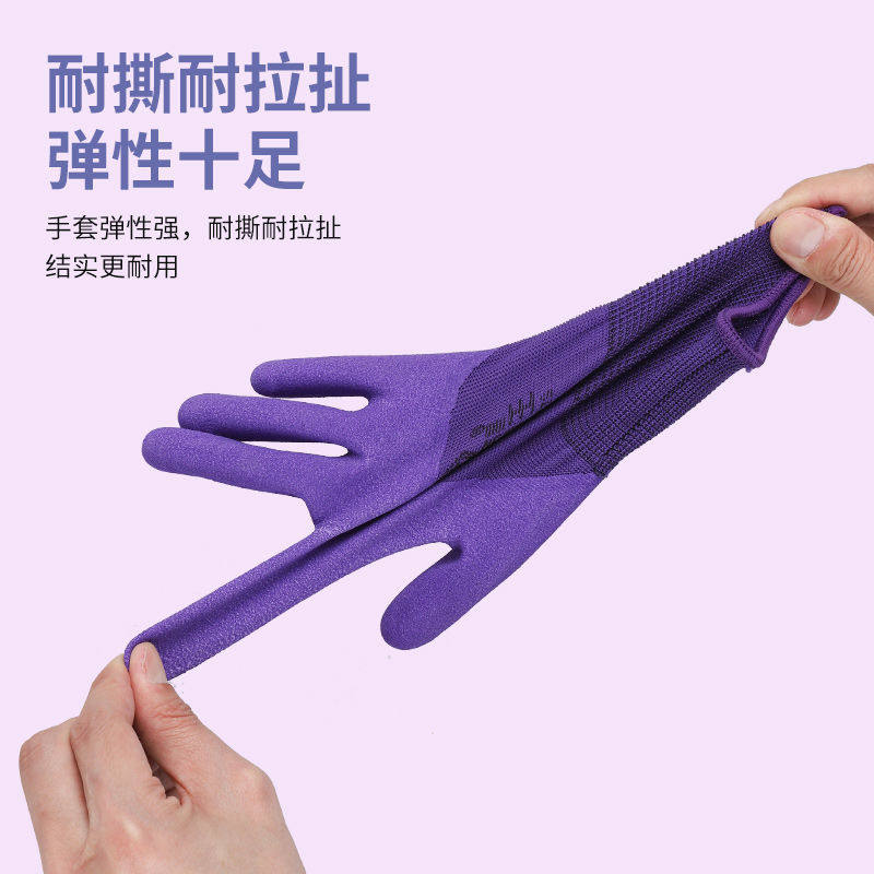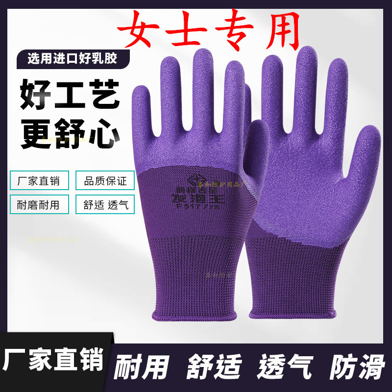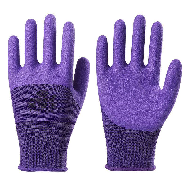 女士小码乳胶发泡王透气耐磨防滑浸胶手套工作防护劳保尼龙橡胶厚