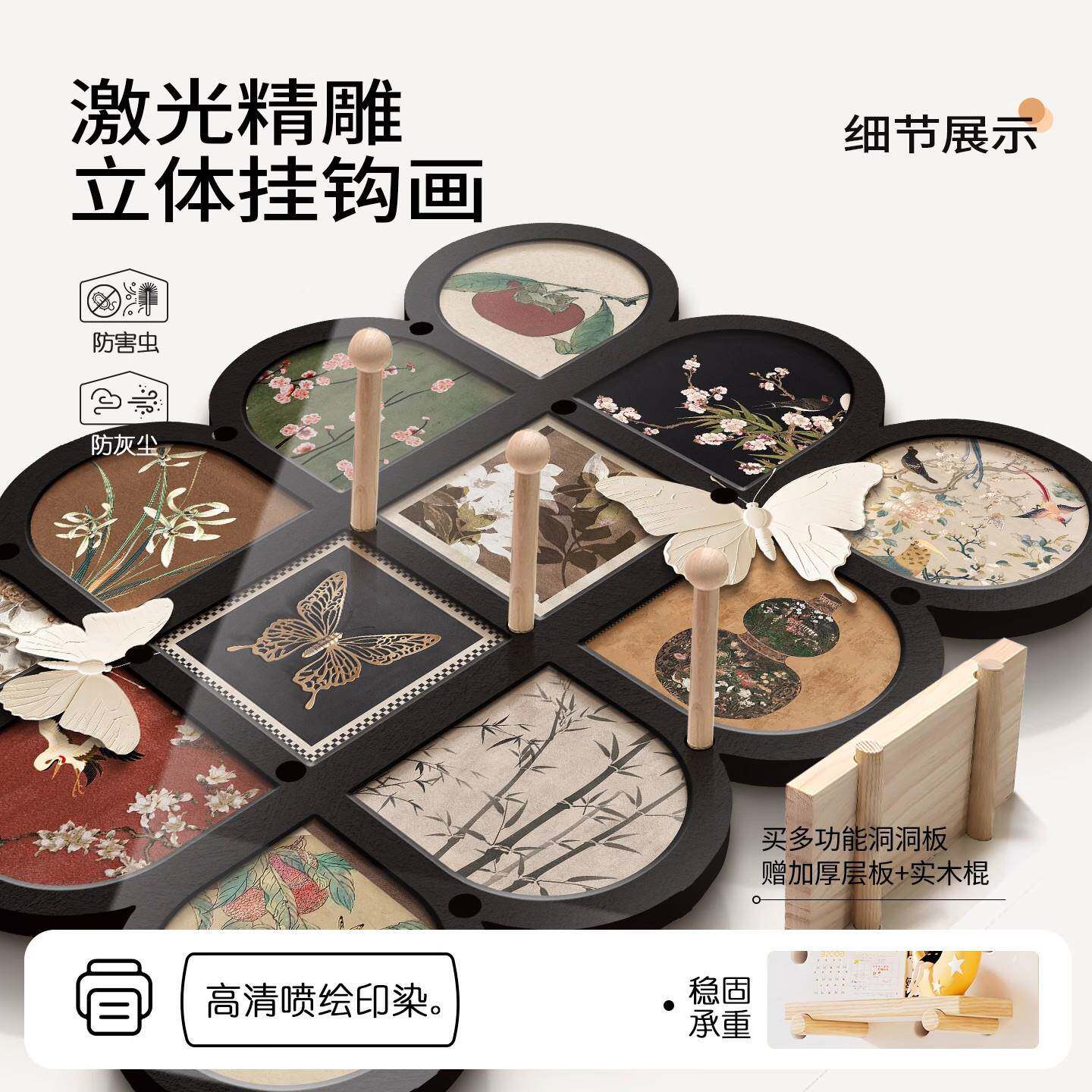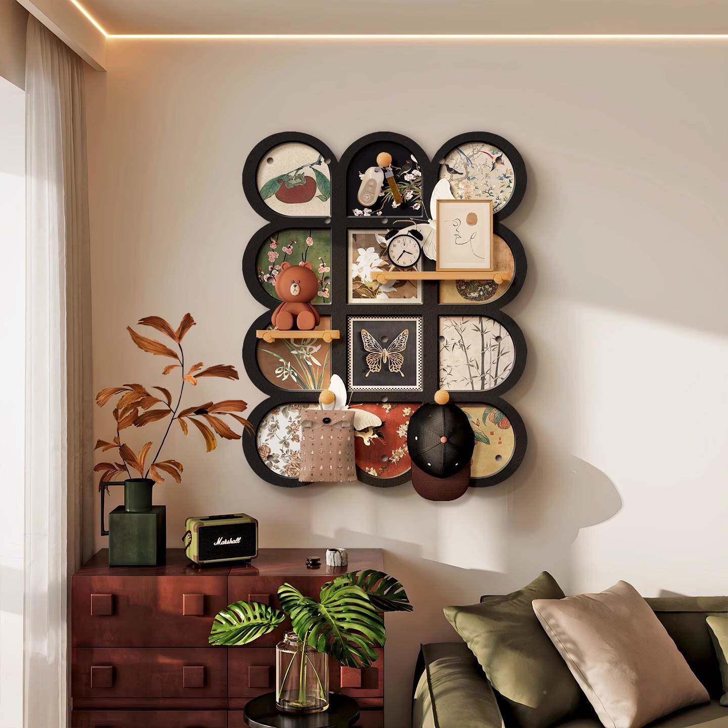 复中古洞古风客厅背景墙装饰画高级788-99感墙面挂画收纳置物架洞