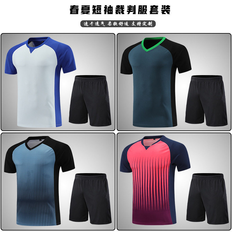 篮球裁判服套装速干透气足球羽毛球裁判短袖上衣长裤可订制印字号