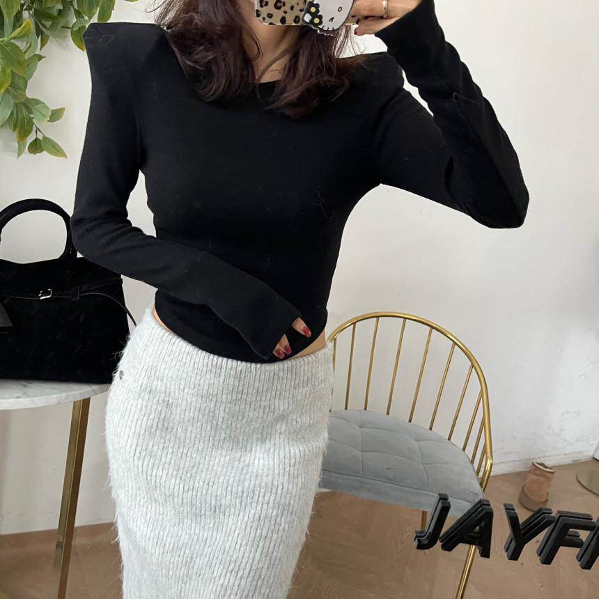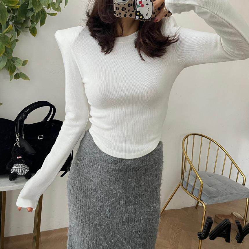十三行秋冬新款韩版简约气质修身显瘦百搭垫肩设计感小众长袖上衣