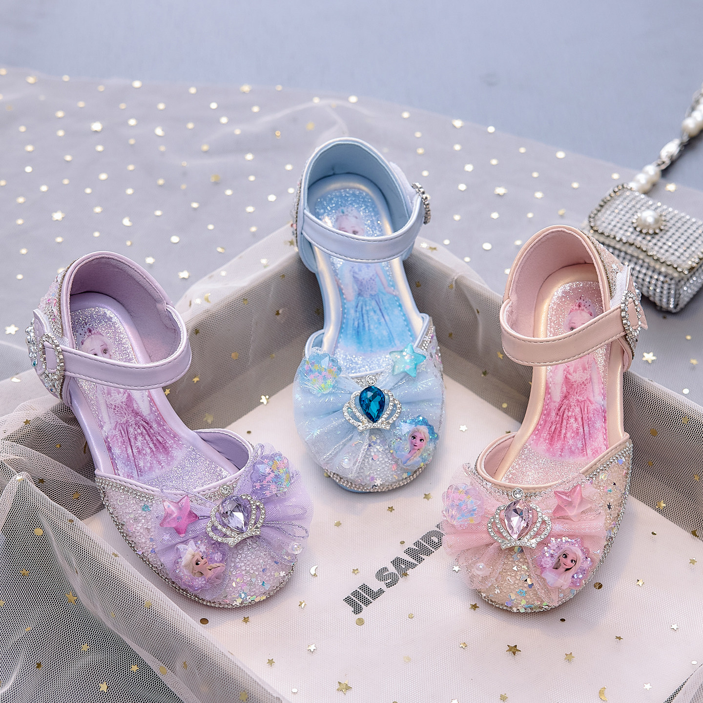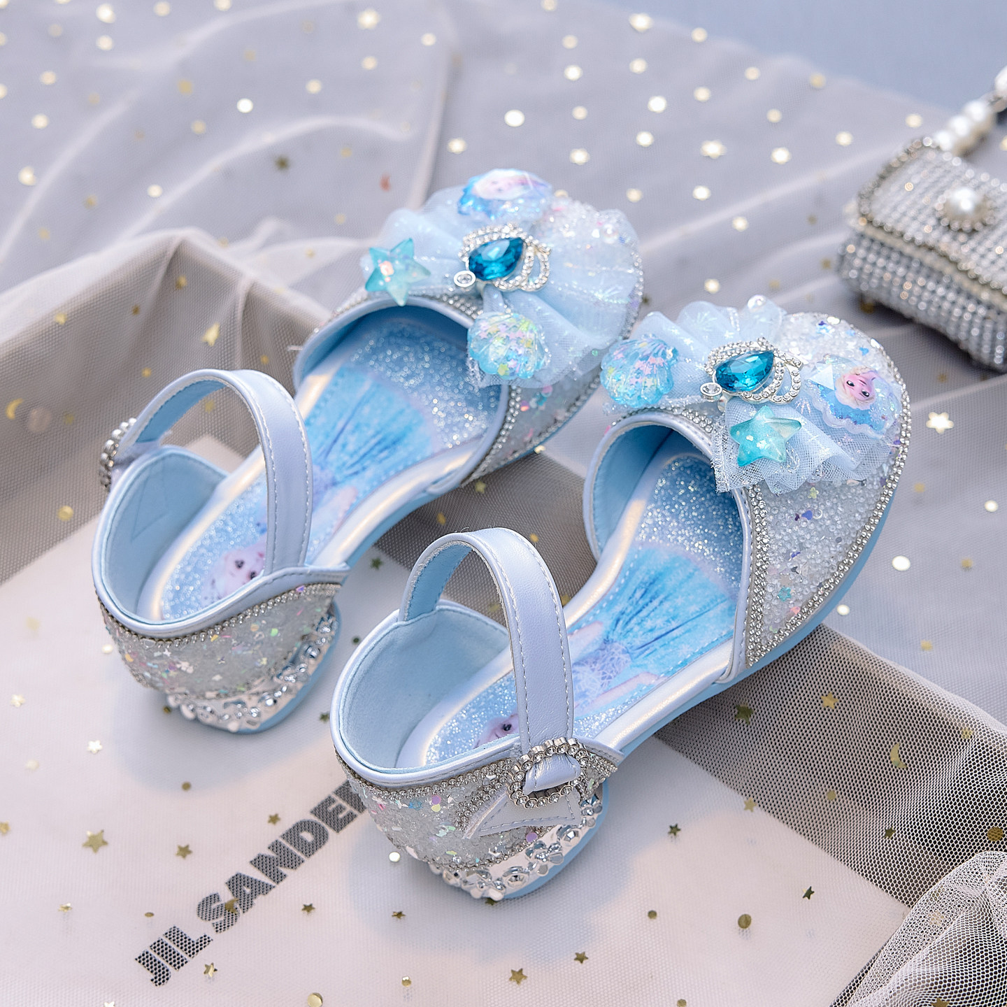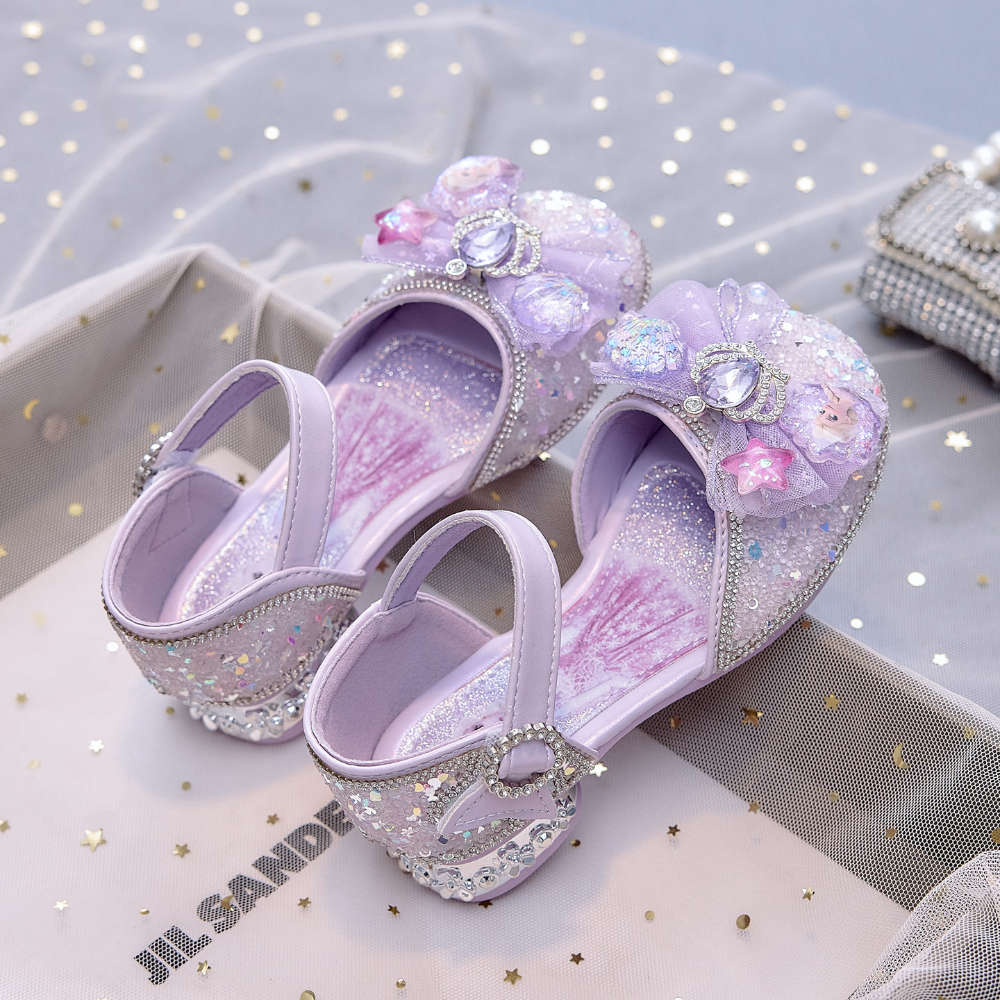 闪亮包头女童凉鞋儿童高跟鞋2026夏季女孩软底包跟皇冠公主水晶鞋