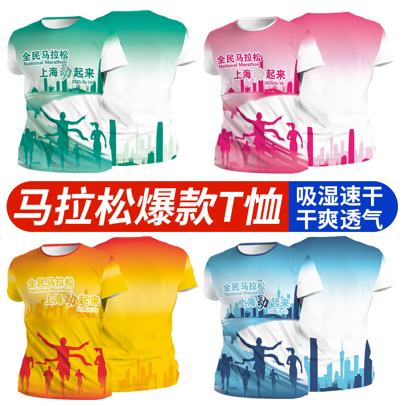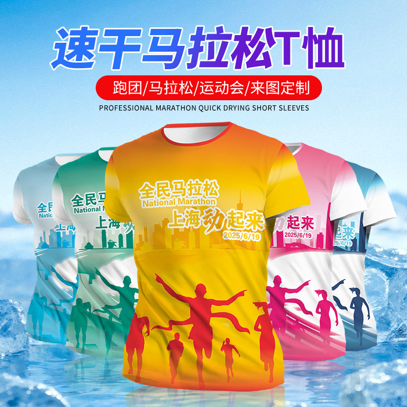 速干衣跑步t恤定制马拉松背心运动冰丝圆领短袖全身印图案字logo