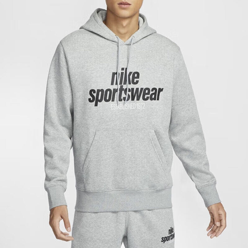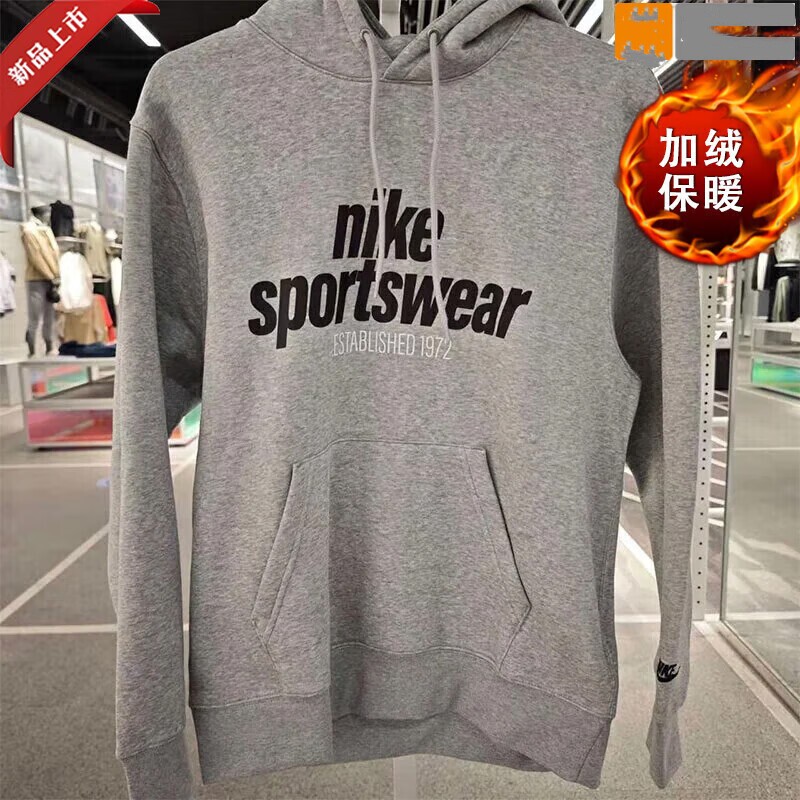 灰色连帽卫衣Nike耐克加绒外套冬季新款男士上衣厚款运动服HJ2160