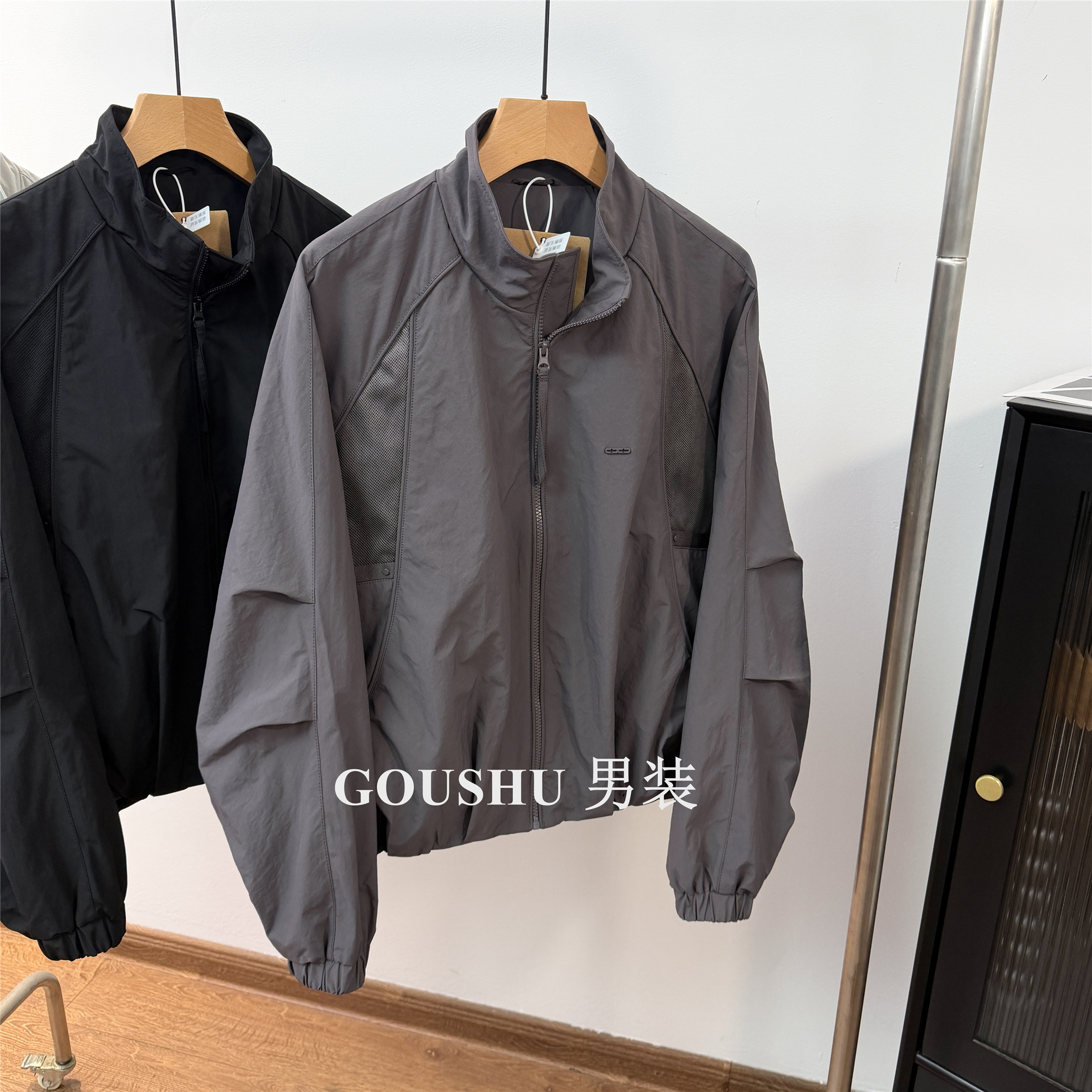 高智极简风拼接设计立领飞行夹克男士春季新款宽松蝙蝠袖外套男款