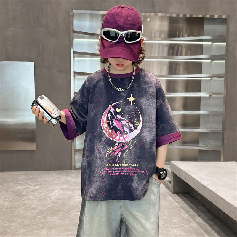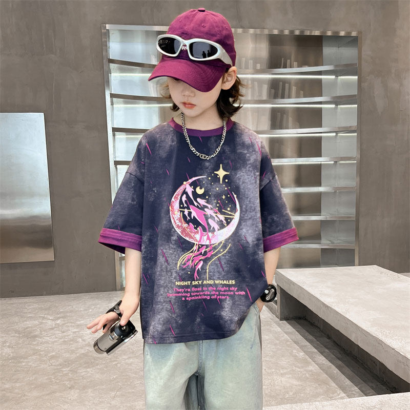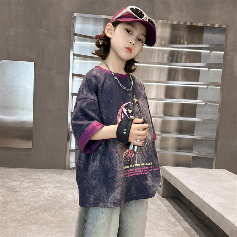 男童短袖t恤2026新款儿童夏季男孩痞帅风中大童夏装纯棉半袖体恤T