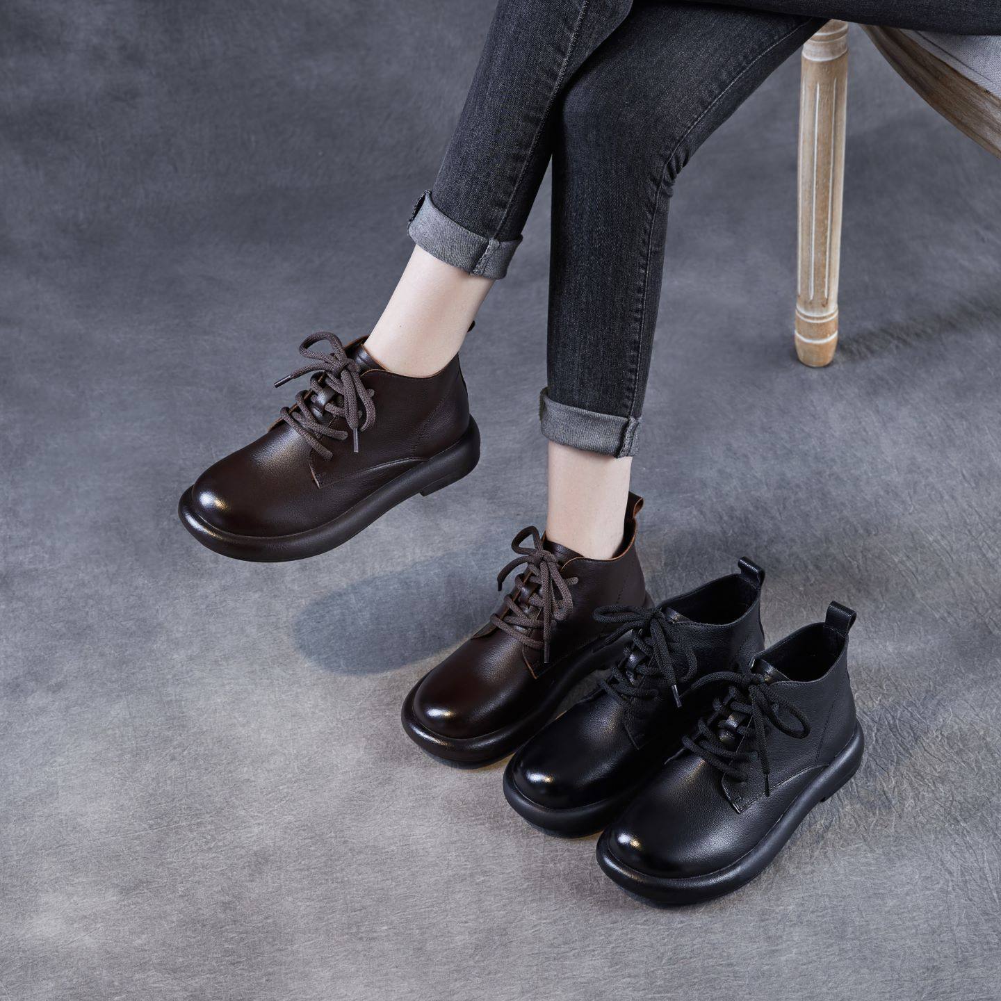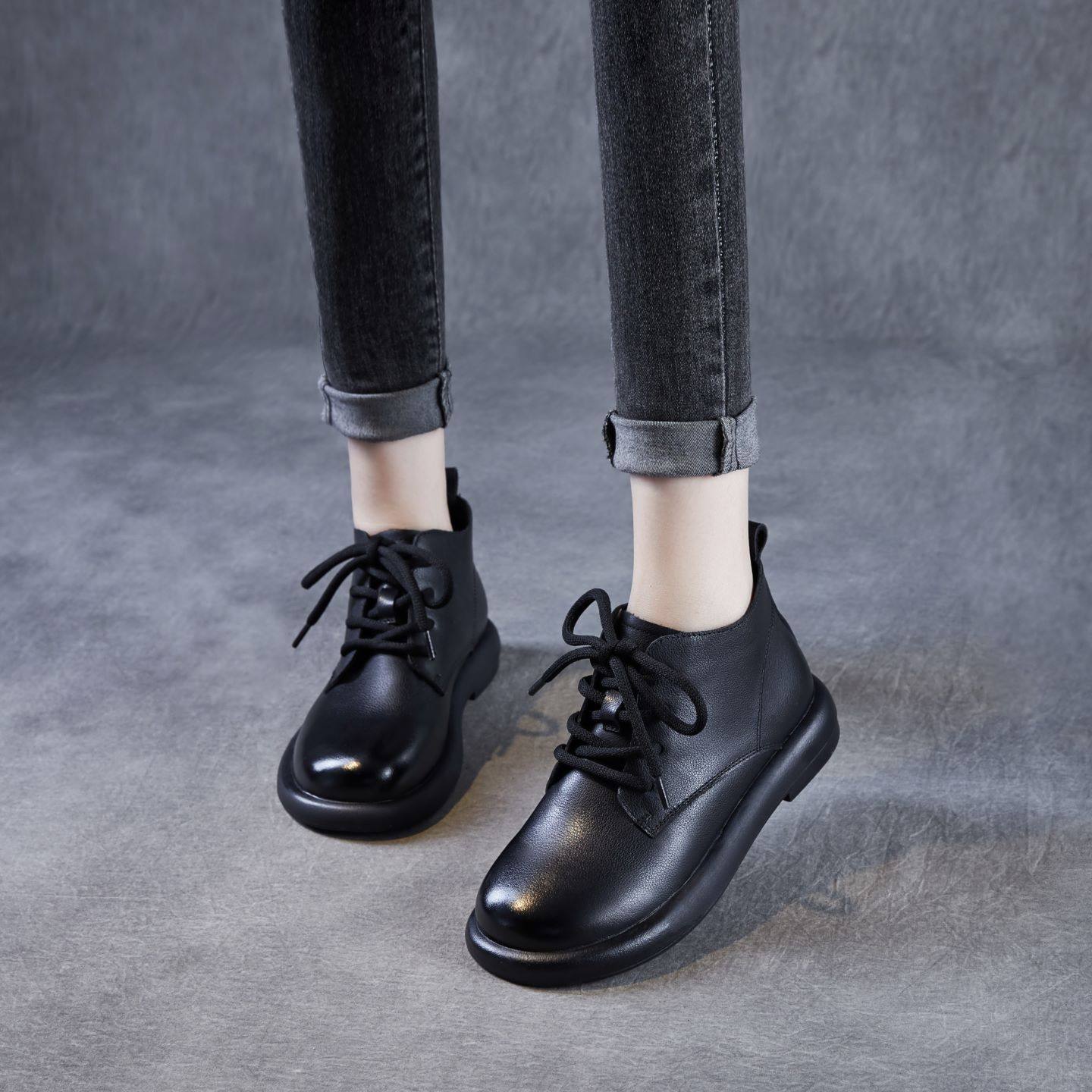 头层牛皮英伦风马丁靴女2026秋冬平底短靴子复古单鞋真皮法式单靴