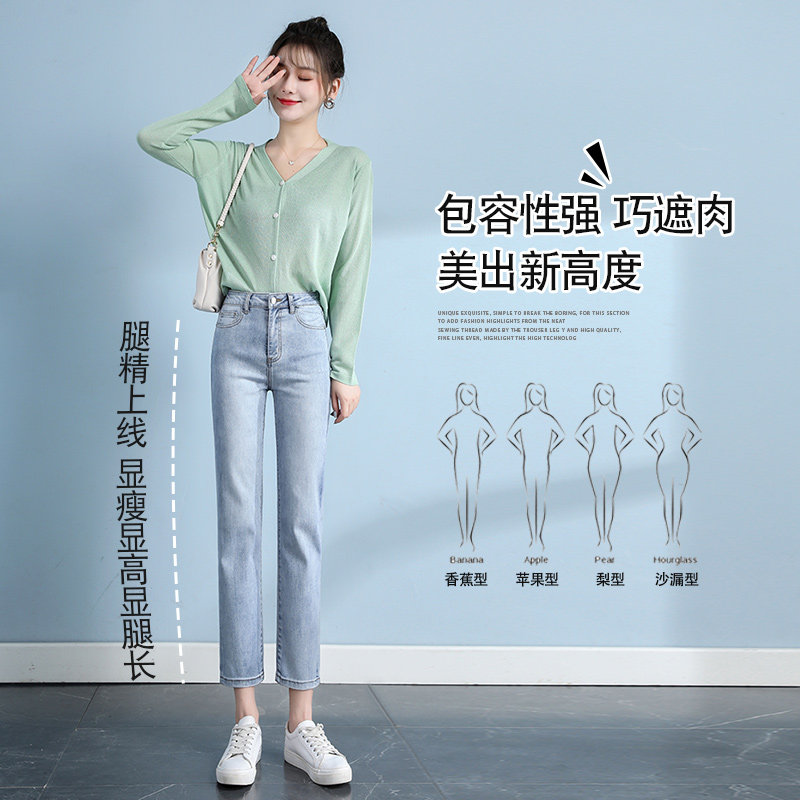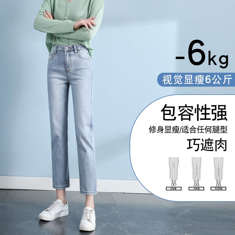 311线报网描述:浅色牛仔裤女 直筒裤法棍裤 梨形身材女裤子