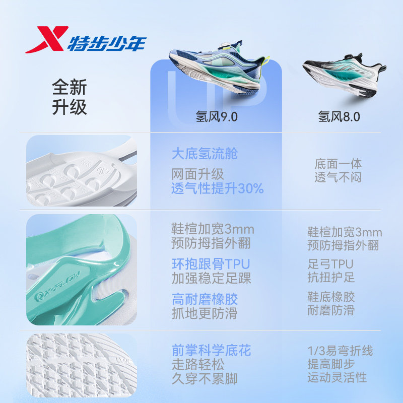 【氢风9.0跑鞋】特步儿童官方网面透气跑步鞋男童运动鞋女童鞋子