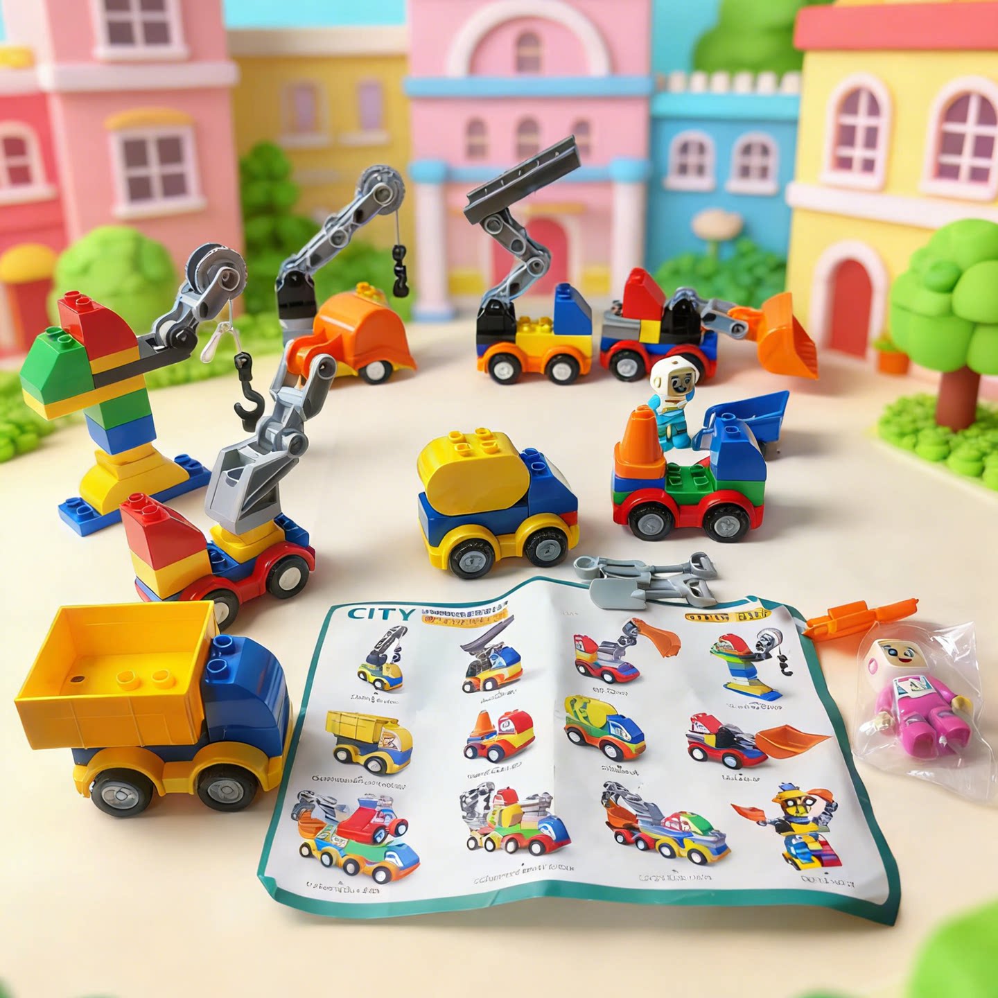 兼容大颗粒积木百变小车汽车拼装玩具儿童益智挖掘机推土机翻斗车