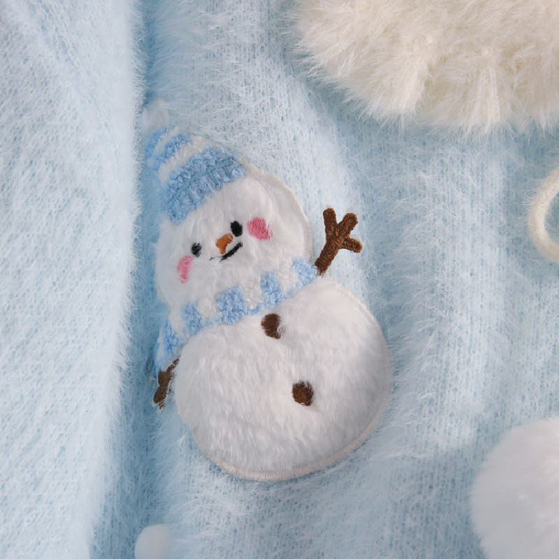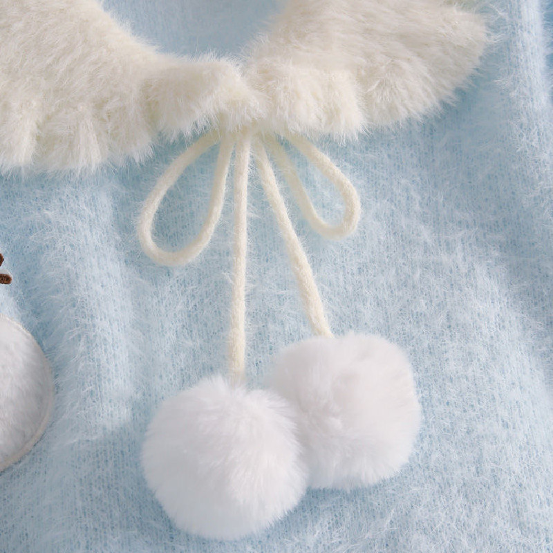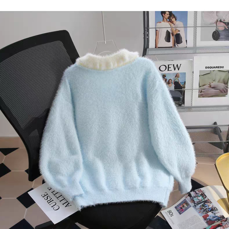 女童2025冬季新款加厚毛衣中大童超好看水貂绒外套蓝色娃娃领上衣