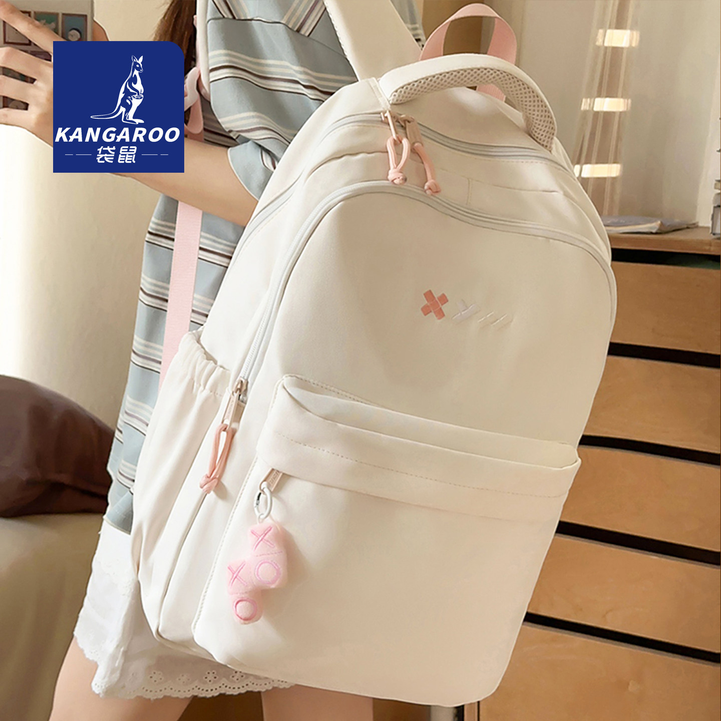 袋鼠双肩包 2025新款高中生书包女大容量结实耐用 初中生女生背包