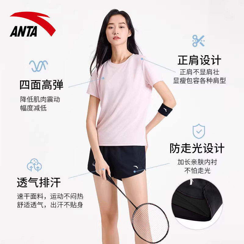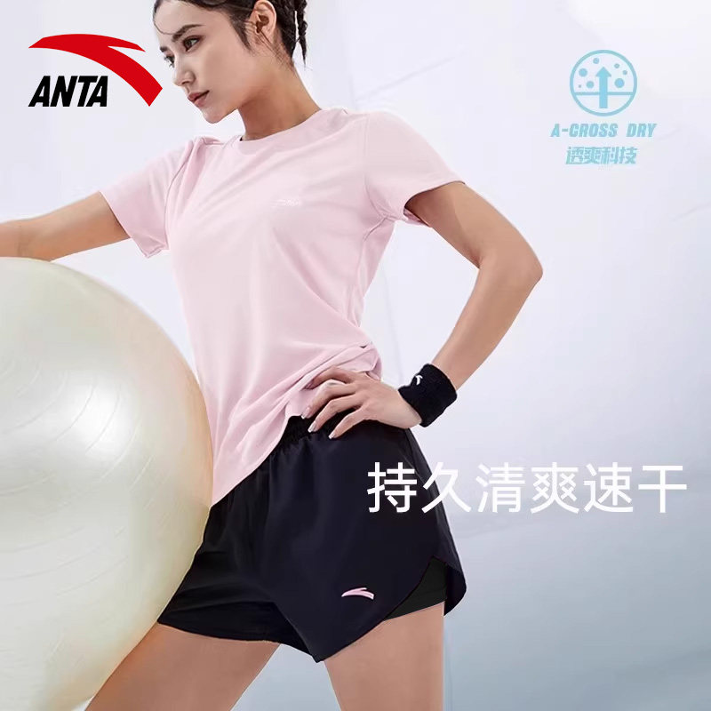 安踏速干衣运动套装女夏季跑步健身瑜伽服冰丝透气短袖短裤两件套
