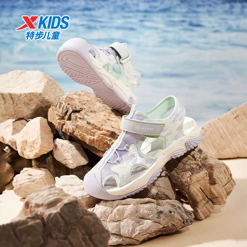 特步童鞋2026夏季新款女童包头凉鞋防滑儿童沙滩鞋中大童运动鞋子