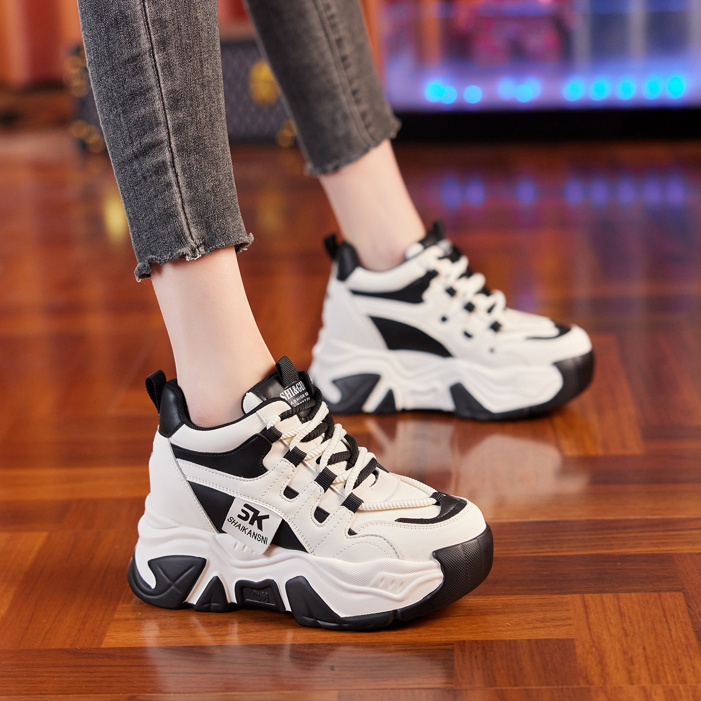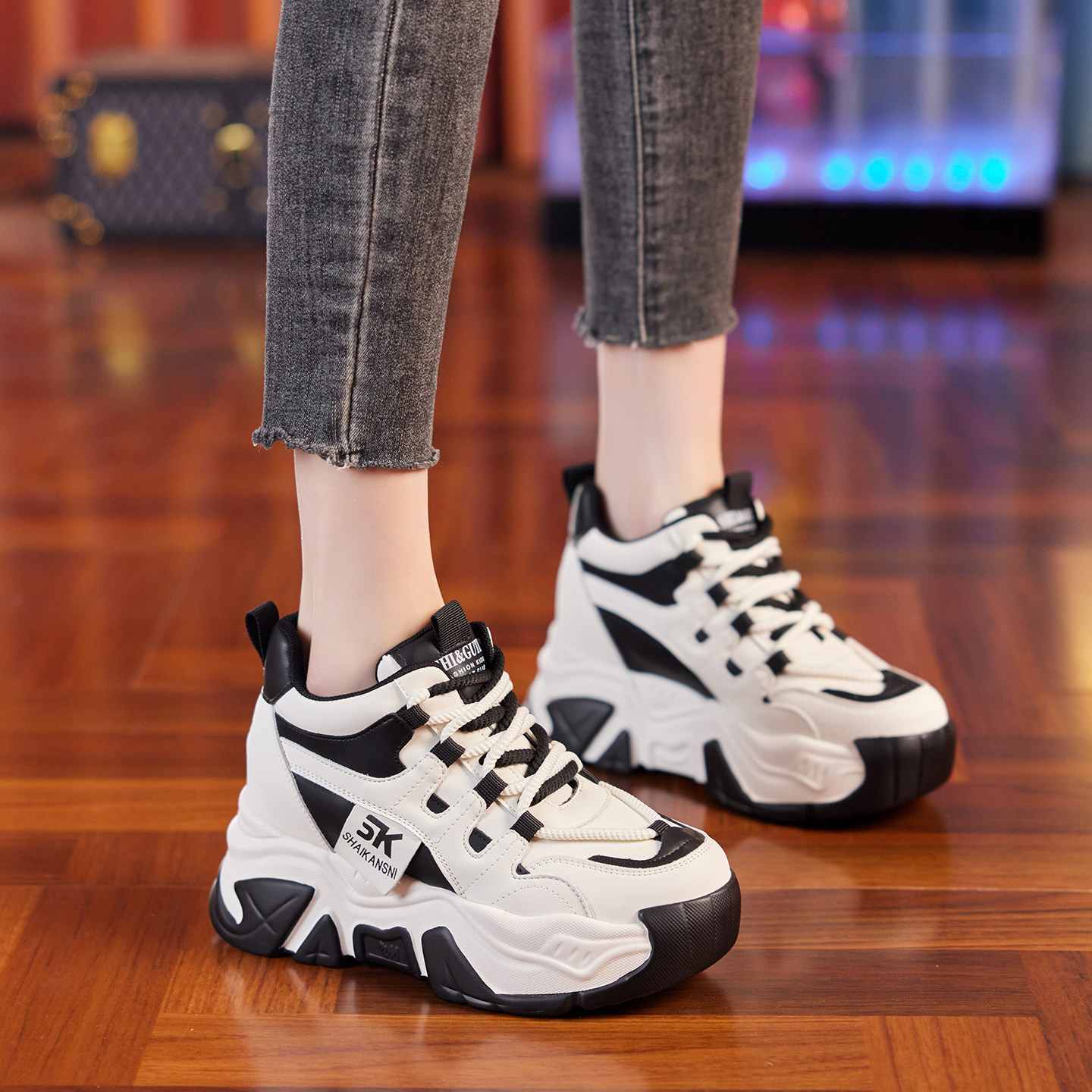 7CM内增高老爹鞋女2026春季新款小个子厚底爆款复古休闲运动女鞋