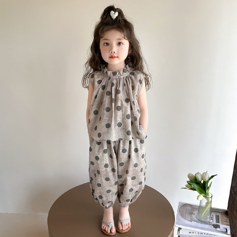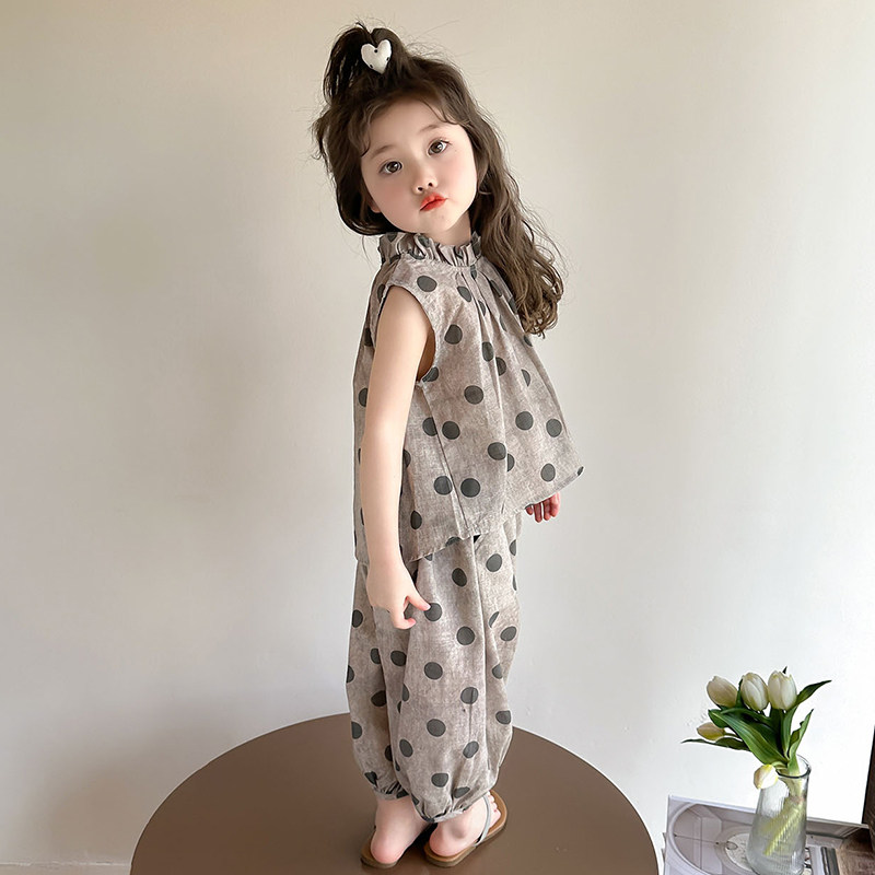 女童夏季波点两件套2026新款儿童清凉透气套装夏装女宝宝宽松衣服