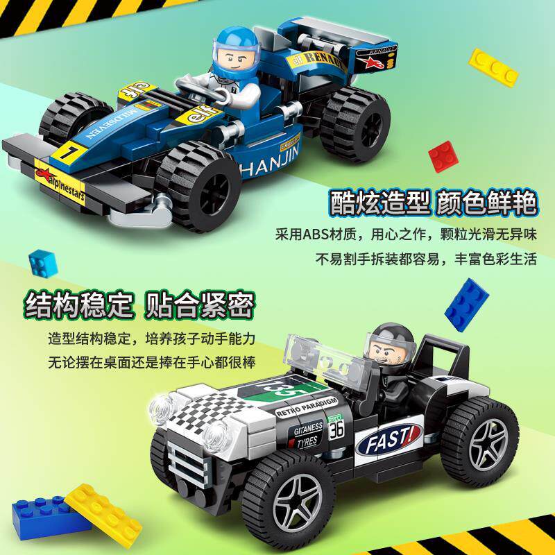 中国积木小型汽车拼装赛车跑车模型儿童玩具男孩益智活动兼容乐高