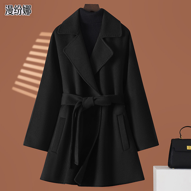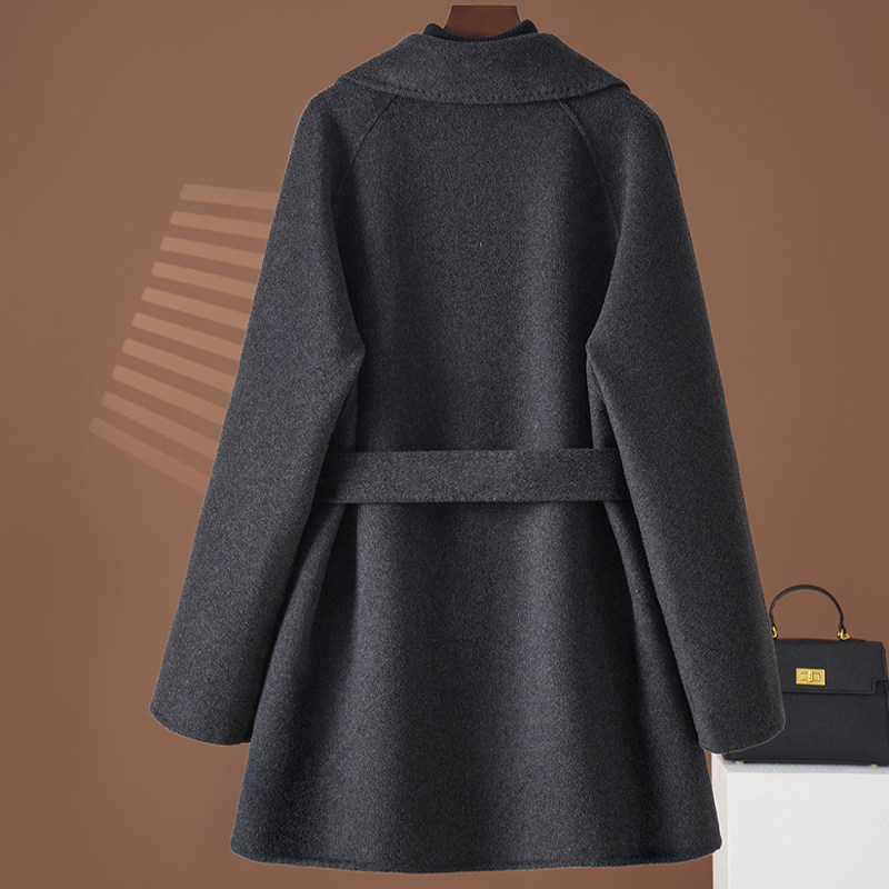 高端双面羊绒大衣女中长款2025新款修身收腰赫本风羊毛呢外套