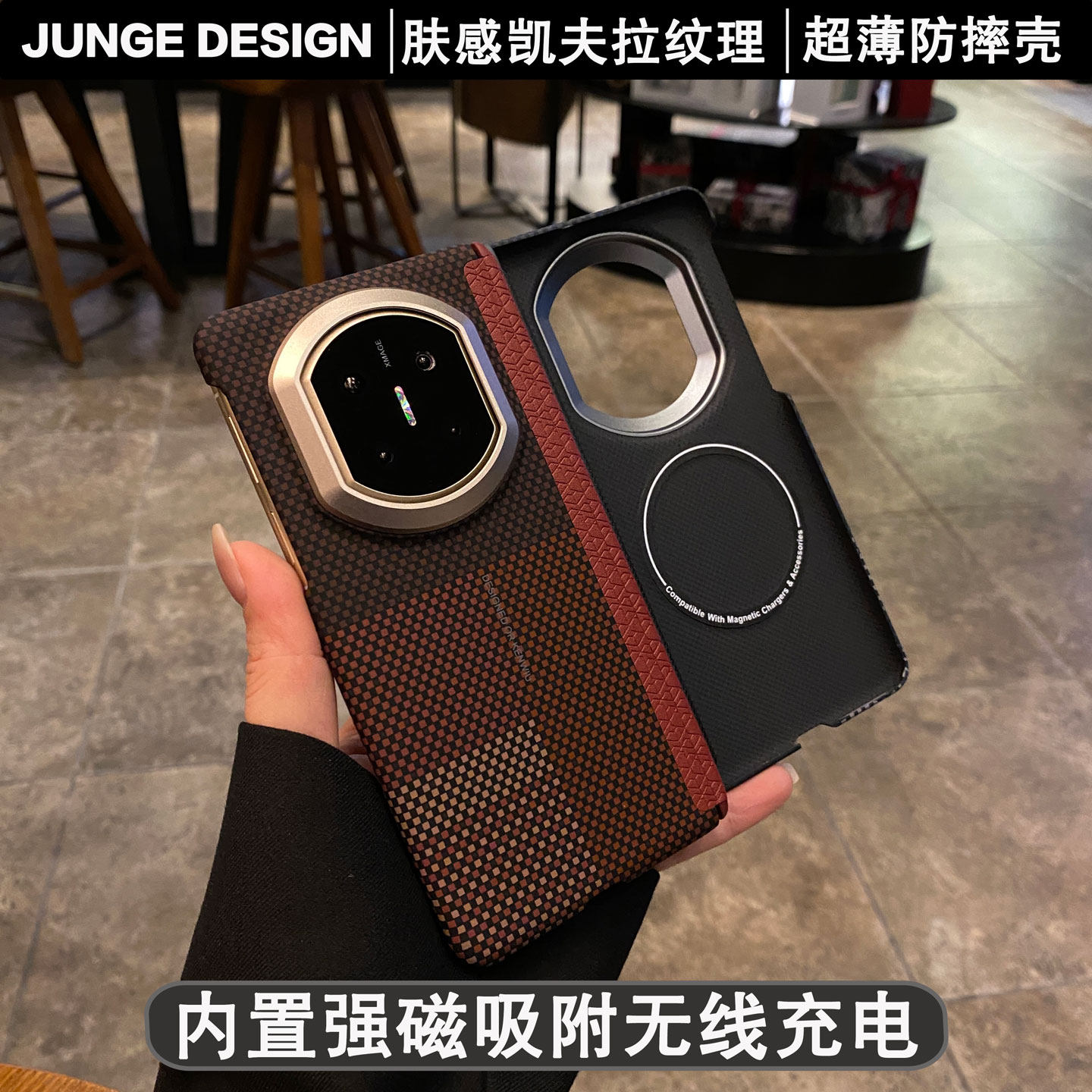 适用华为matex7手机壳新款中轴全包硬壳超薄凯夫拉纹理Matex6典藏版内置磁吸X5折叠屏碳纤维纹x3男商务保护套