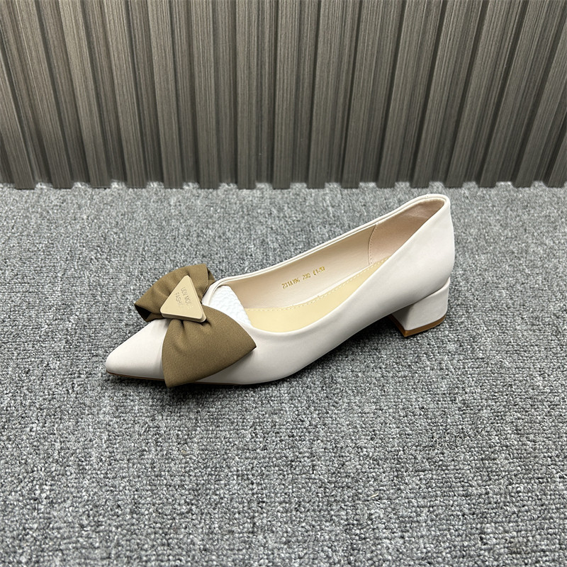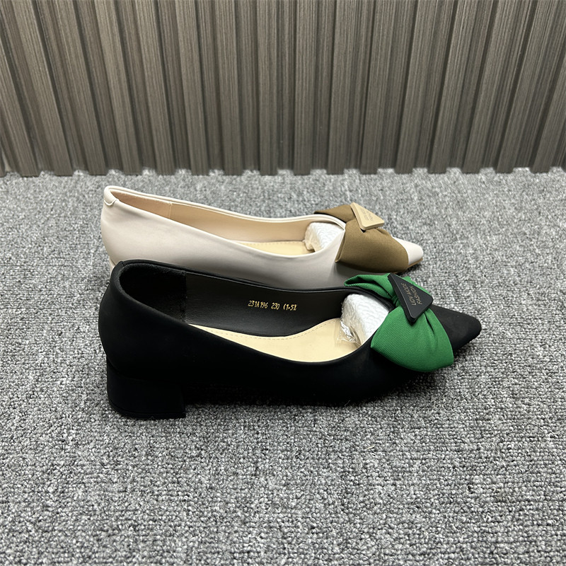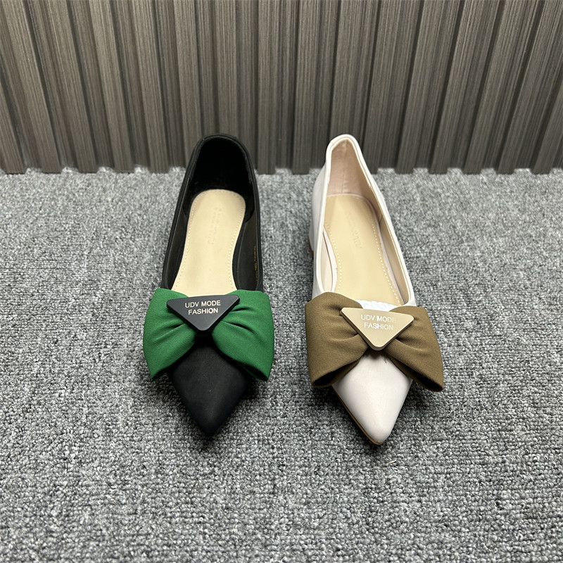 品牌撤柜女单鞋2025年春夏新款百搭浅口豆豆鞋软皮蝴蝶结尖头瓢鞋