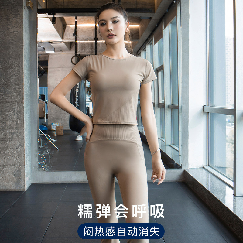 瑜伽服套装女2026新款高级感运动短袖健身房跑步T恤专业训练服冬