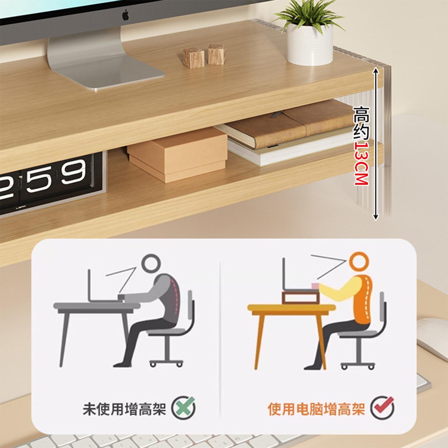 台式工位电脑增高架家用办公桌面收纳置物架亚克力显示器垫高托架