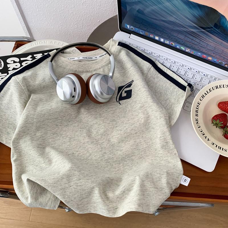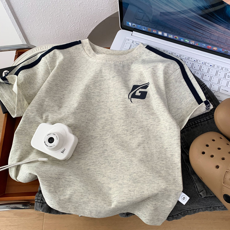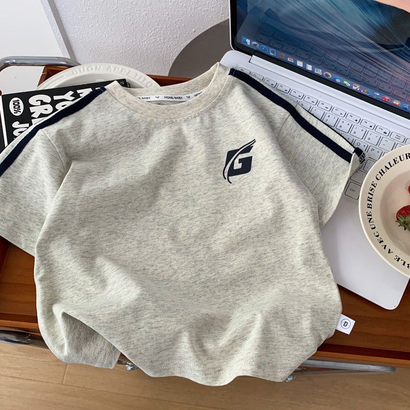 男童短袖T恤纯棉柔软透气运动半袖上衣中小男孩圆领休闲体恤夏季T