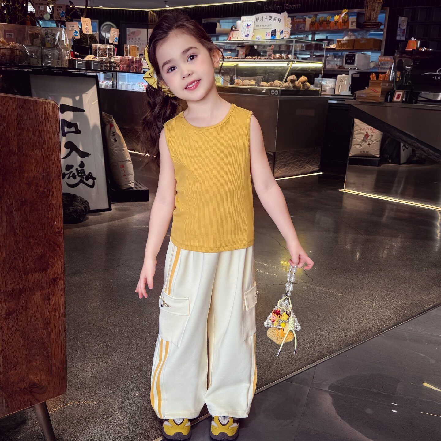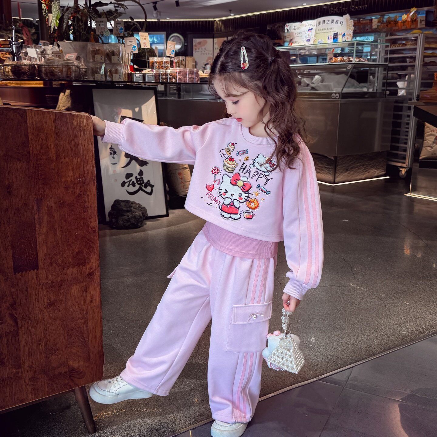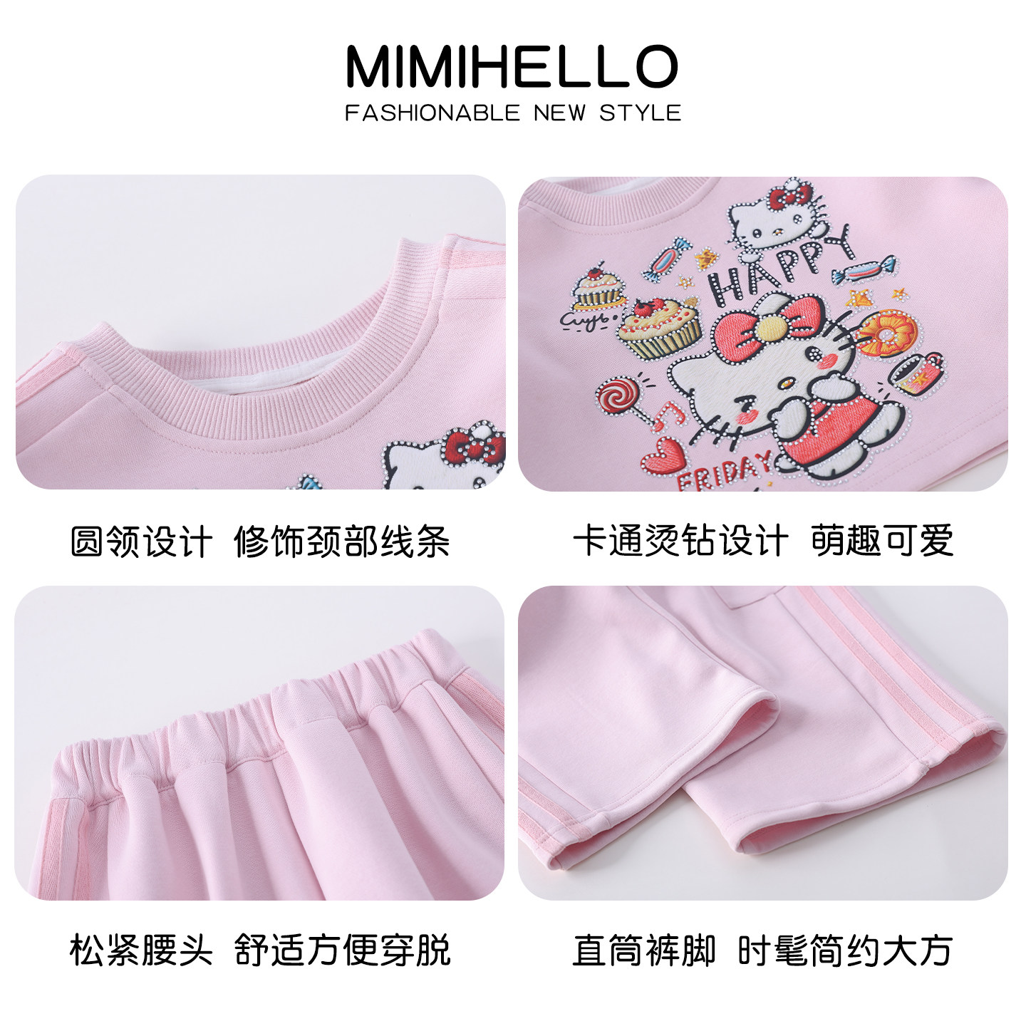 311线报网描述:卡通印花套头上衣+工装阔腿裤三件套