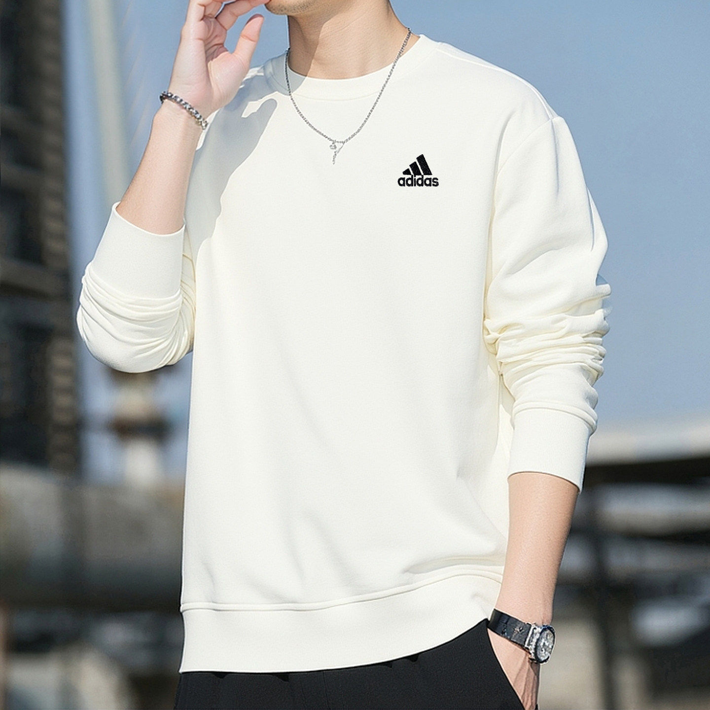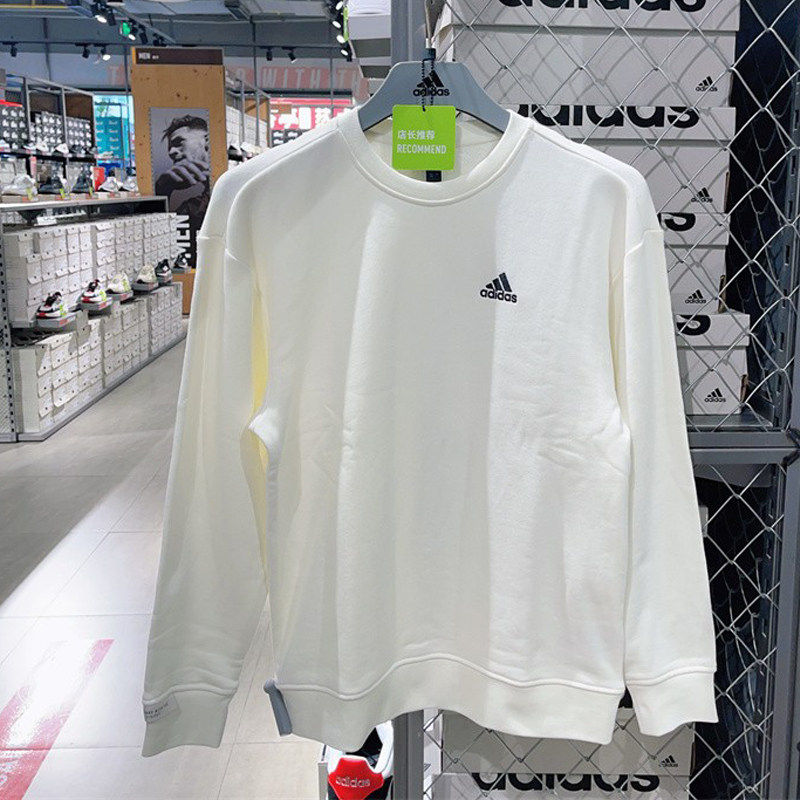 阿迪达斯白色卫衣男秋季新款宽松运动服篮球保暖棉打底衫外套上衣