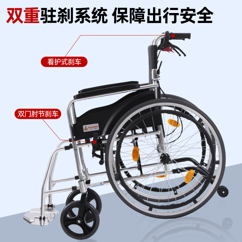 凤凰牌轮椅老人专用铝合金折叠超轻便小巧便携残疾人旅行代步车