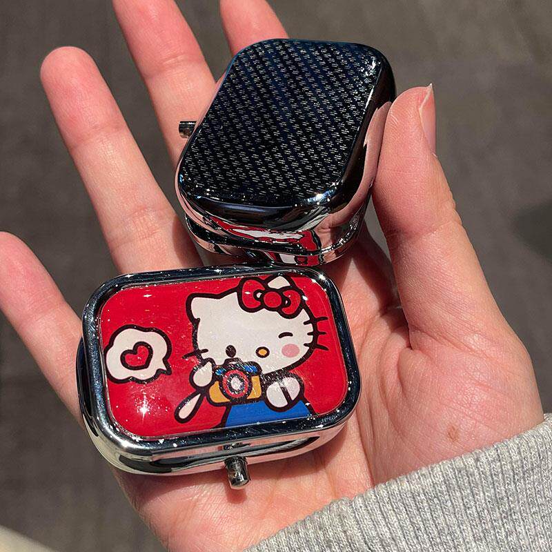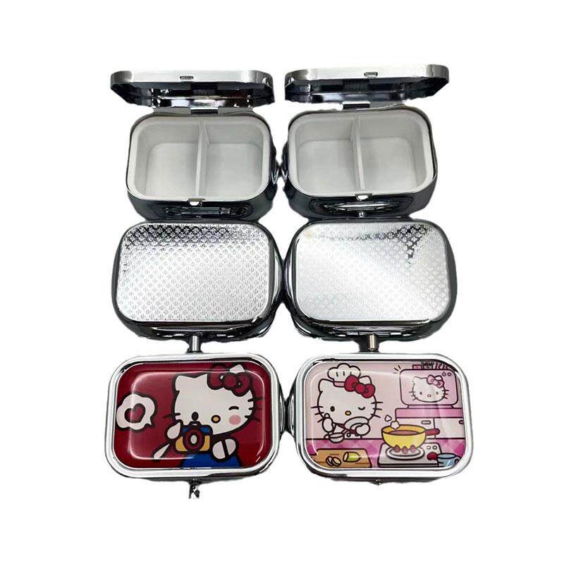 可爱kitty便携式小药盒随身药丸盒内两格金属盒迷你首饰盒带镜片