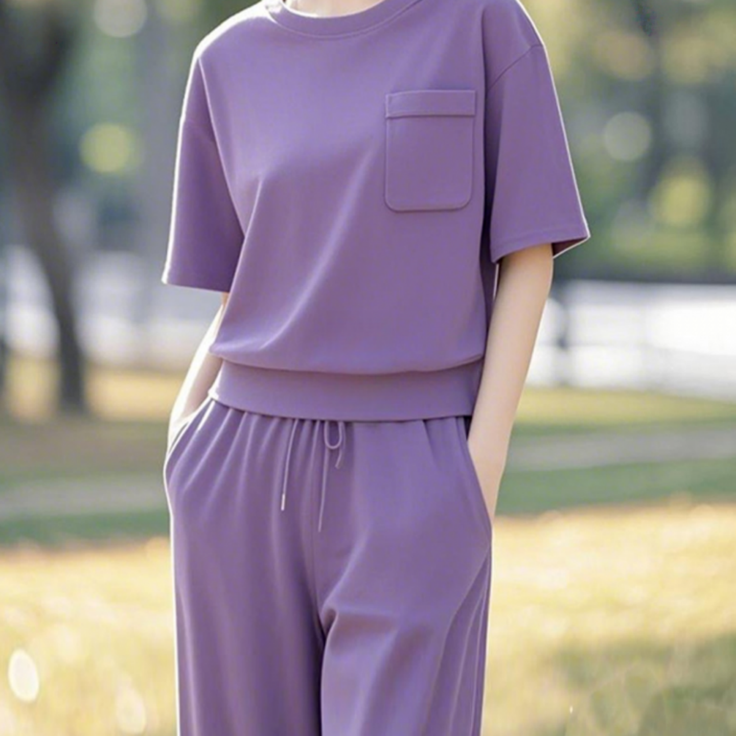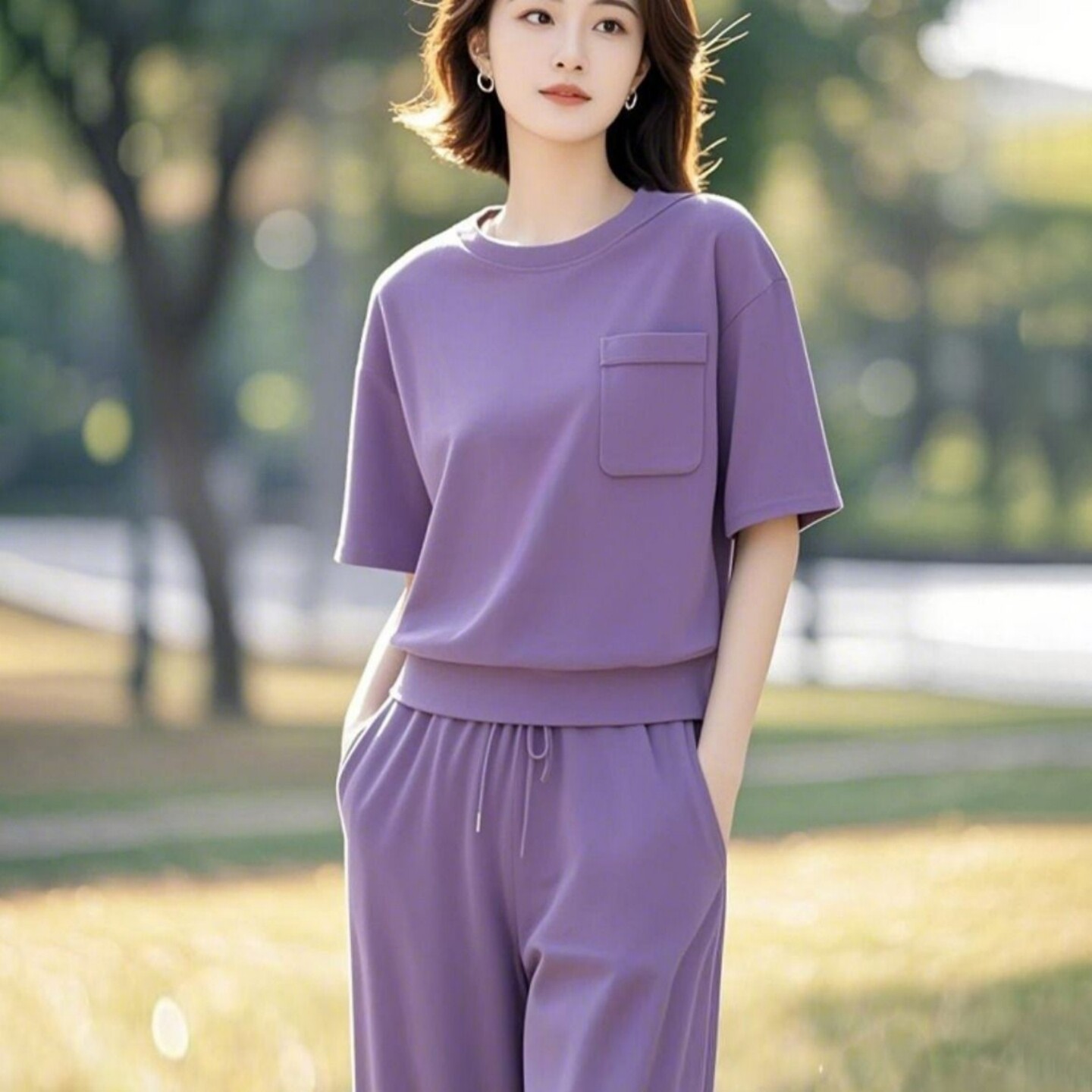 时尚套装女2026春夏季新款紫色运动套装女宽松显瘦休闲两件套