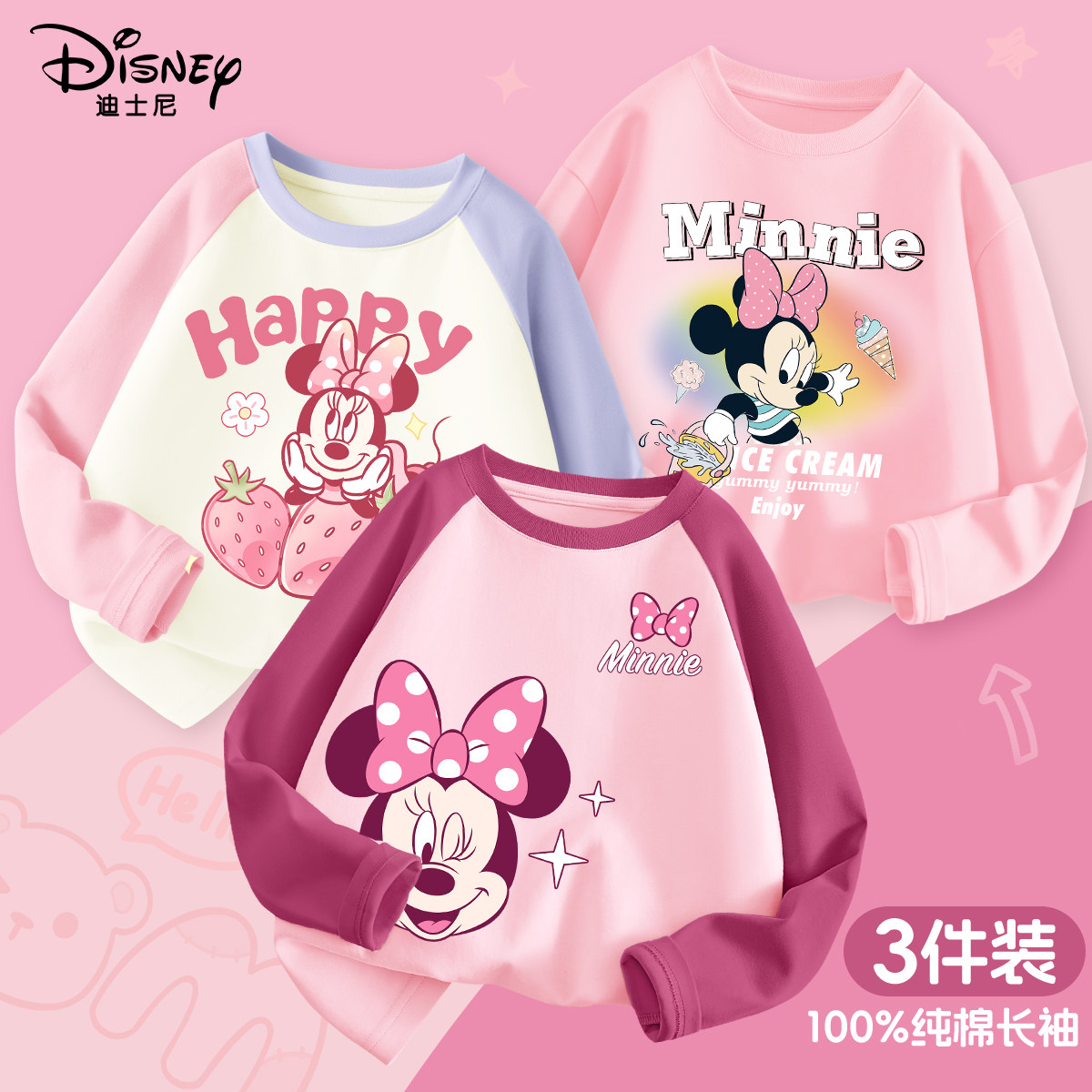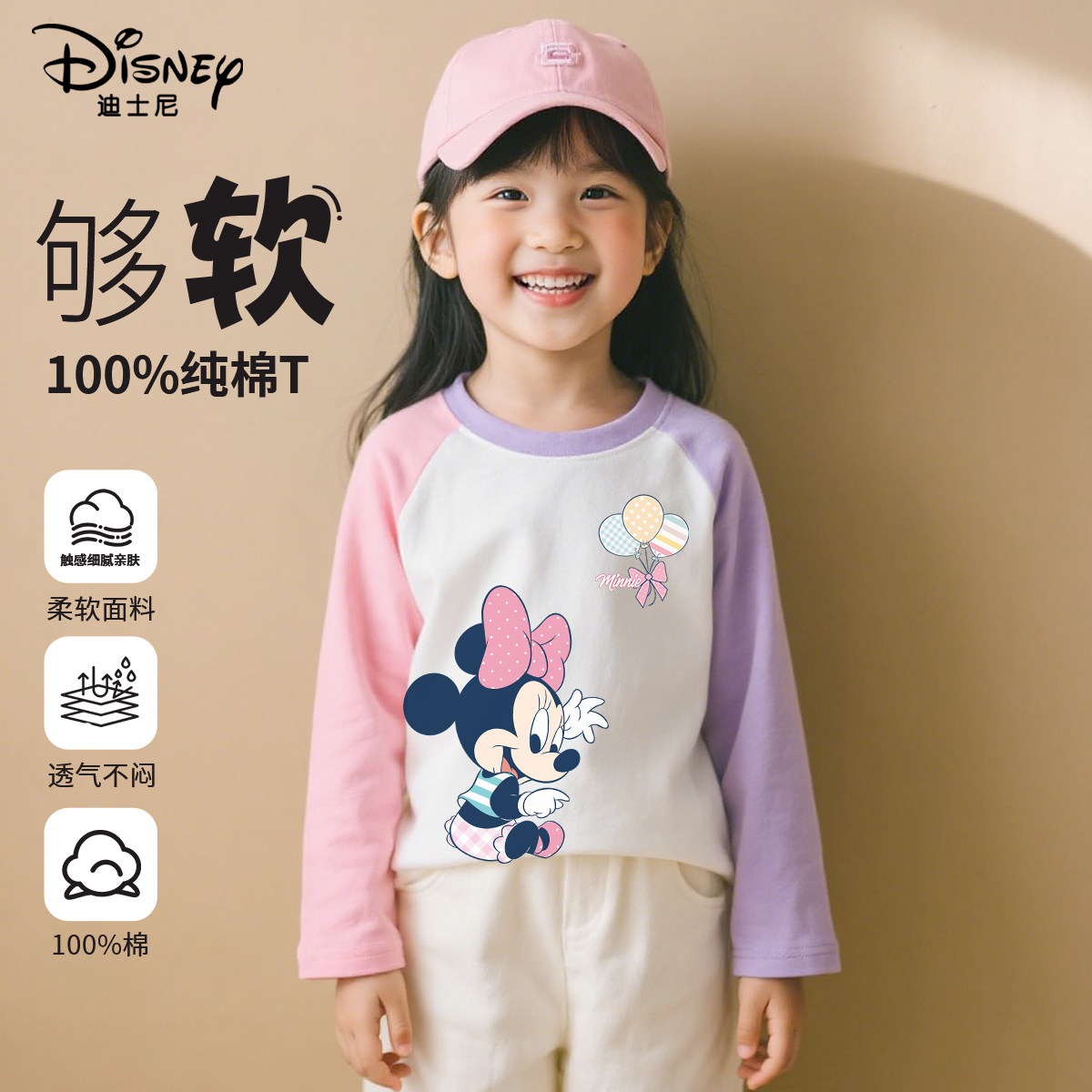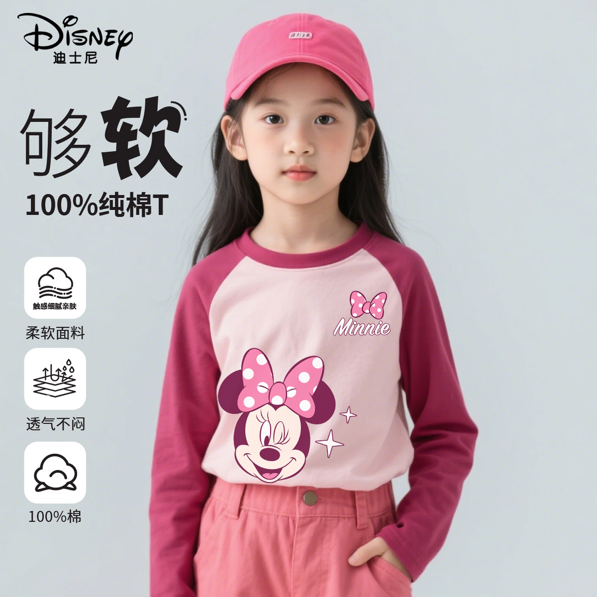 迪士尼女童打底衫小女孩打底衫纯棉洋气时髦儿童春装上衣2026新款