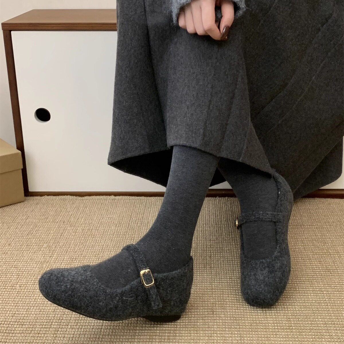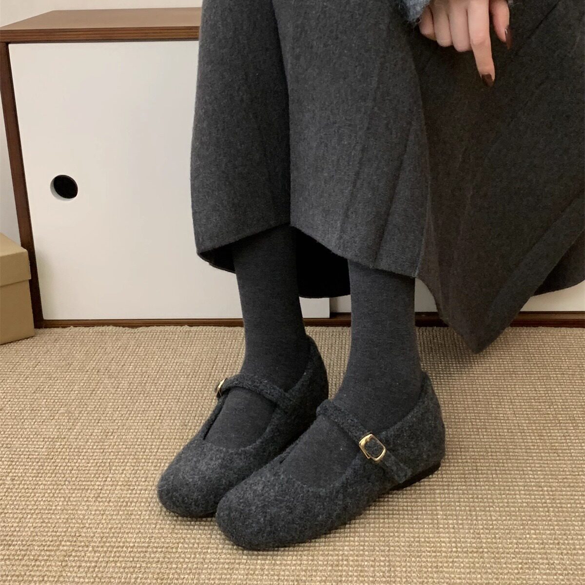 内增高玛丽珍毛毛鞋女冬外穿新款韩版灰色呢子单鞋女厚底加绒棉鞋