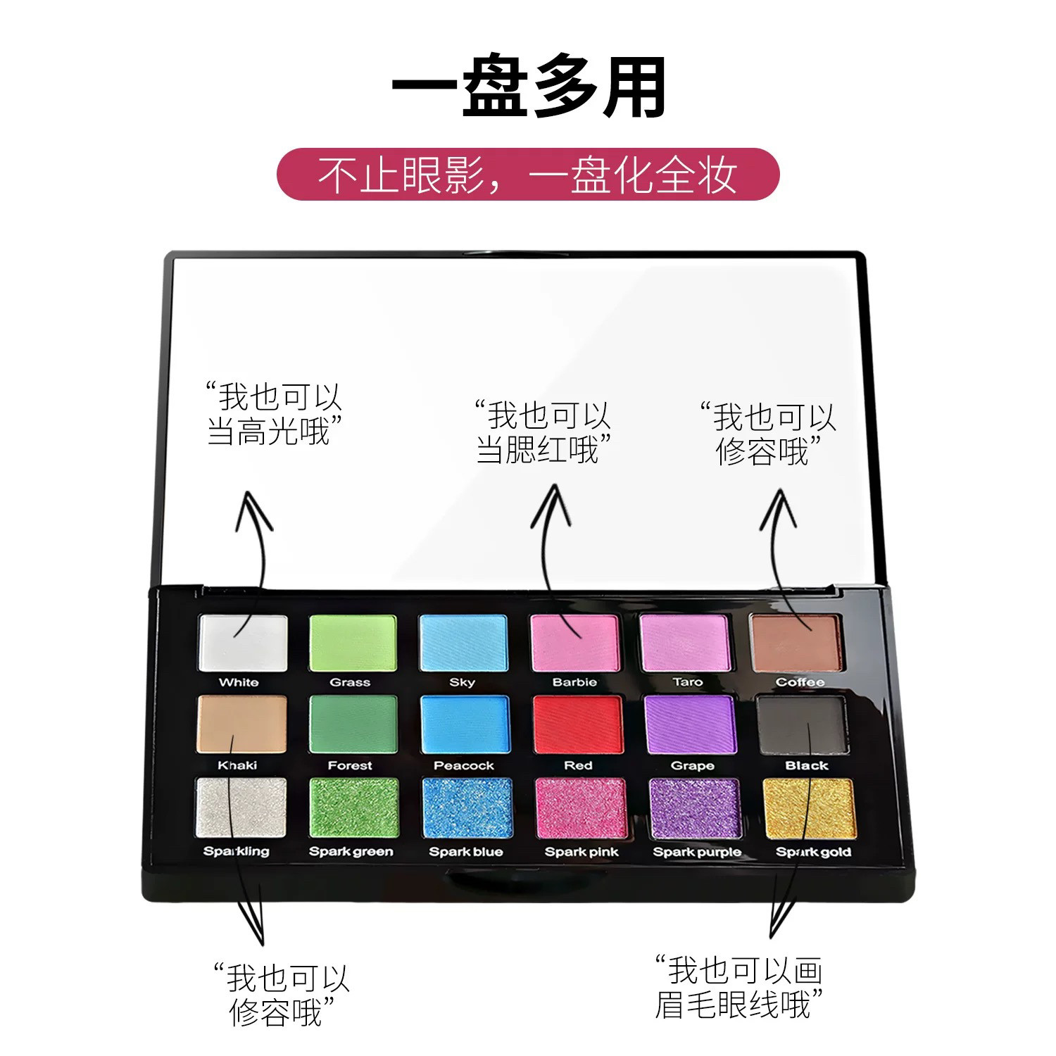 壹花半屿舞蹈演出舞台妆儿童专用拉丁舞比赛眼影盘18色高光表演