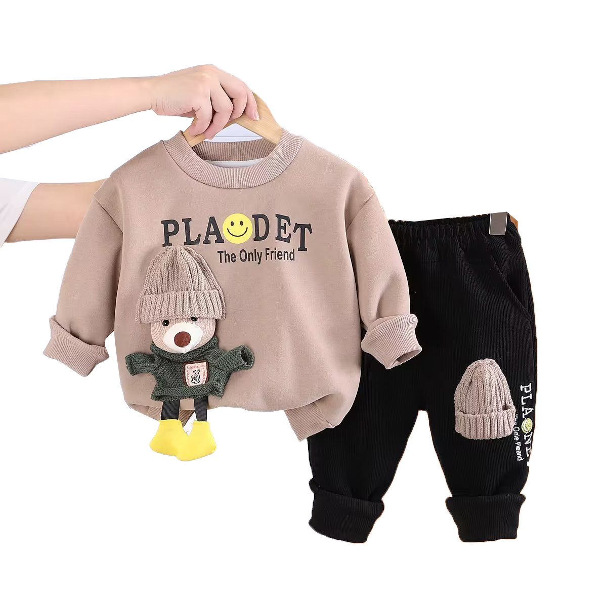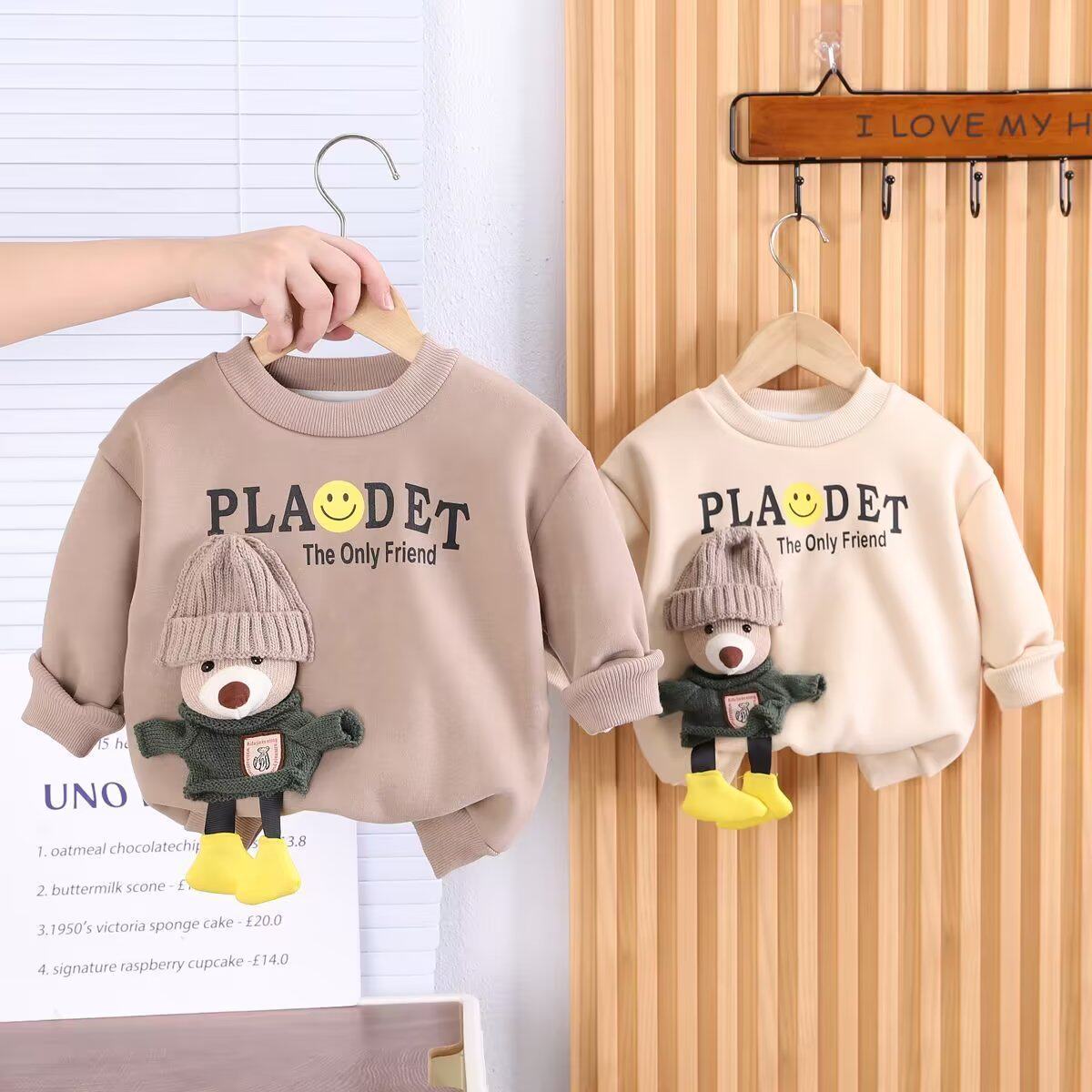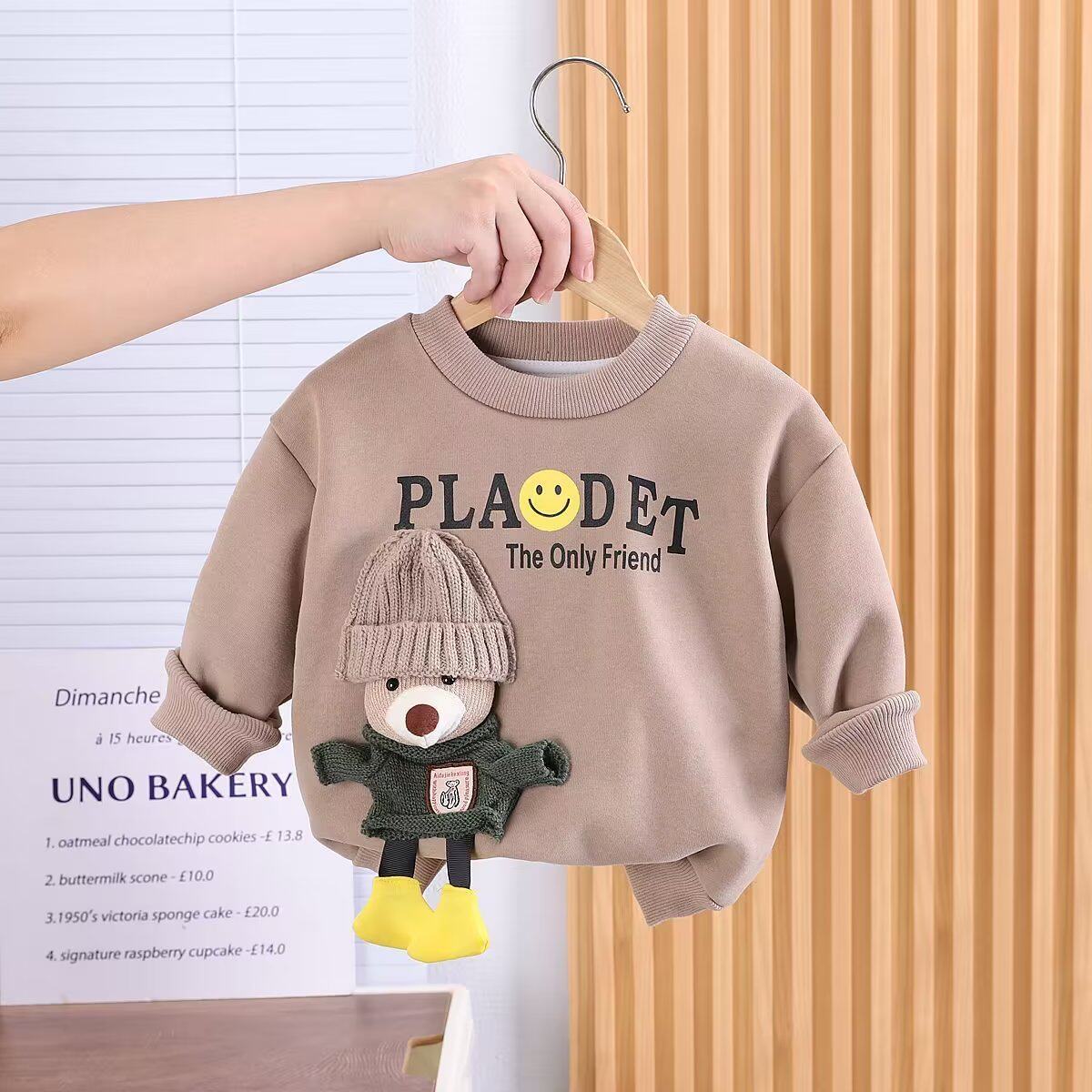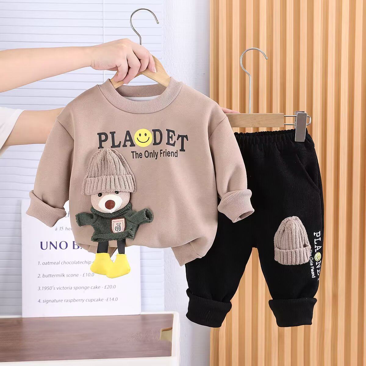 男女童冬季卫衣套装2026新款加绒加厚休闲运动时髦卡通儿童两件套