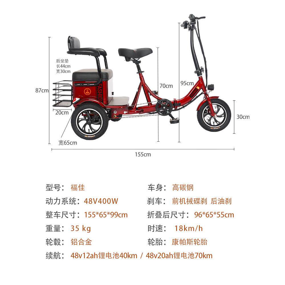 折叠电动三轮车小型迷你脚踏助力自行车休闲车女成人家用老年新款