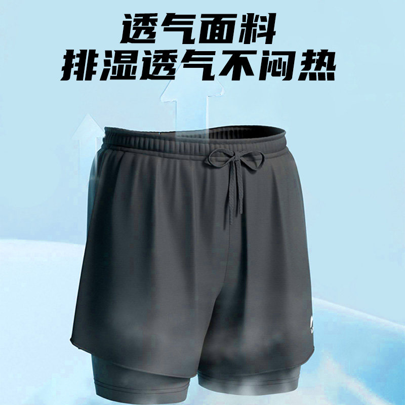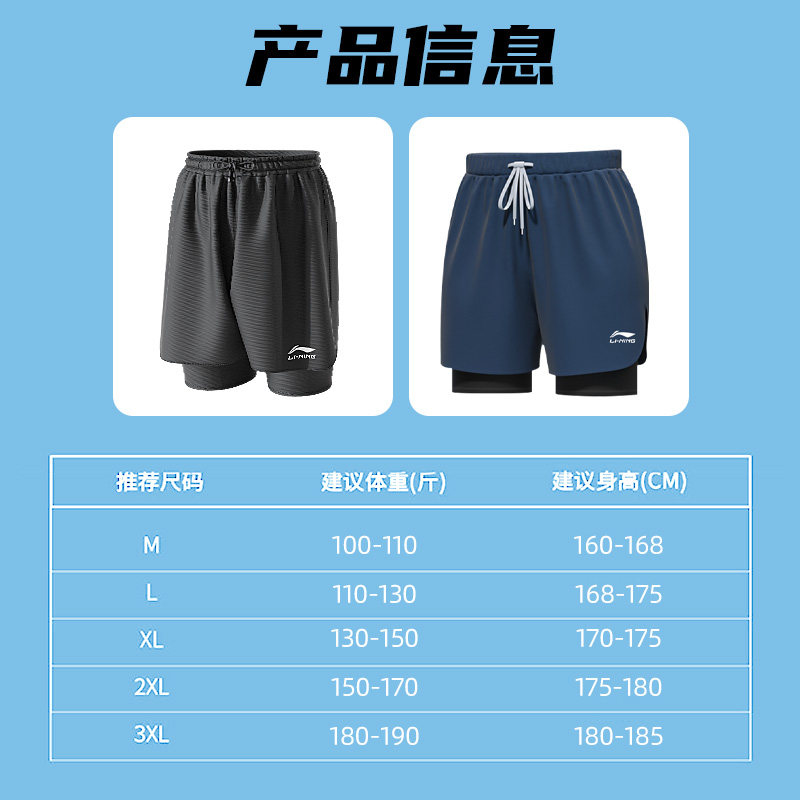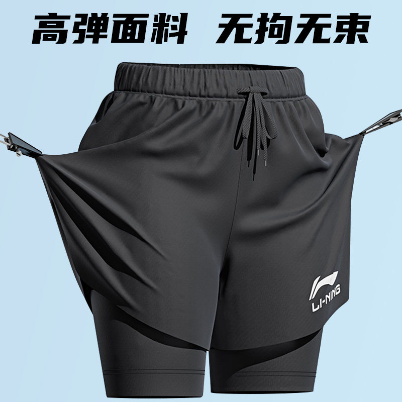 311线报网描述:李宁正品 带内衬假两件防尴尬 速干透气高弹
